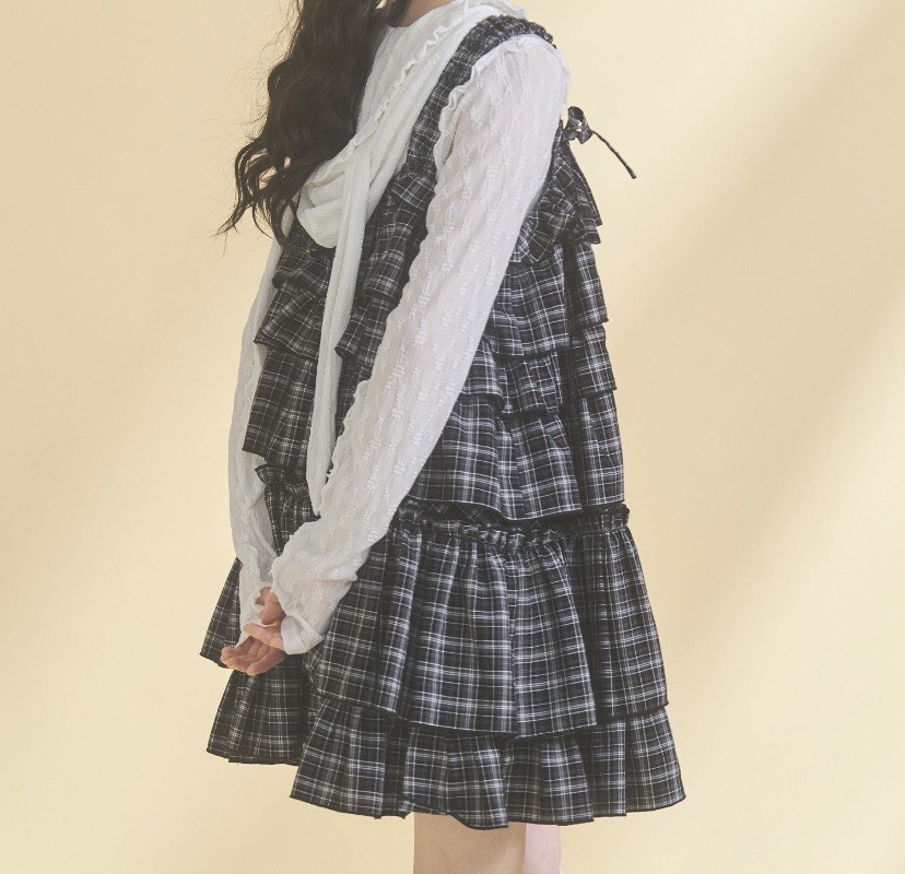 裾にフリルがついていて、おなかインしなくてもちょうど良い丈に仕上げています。