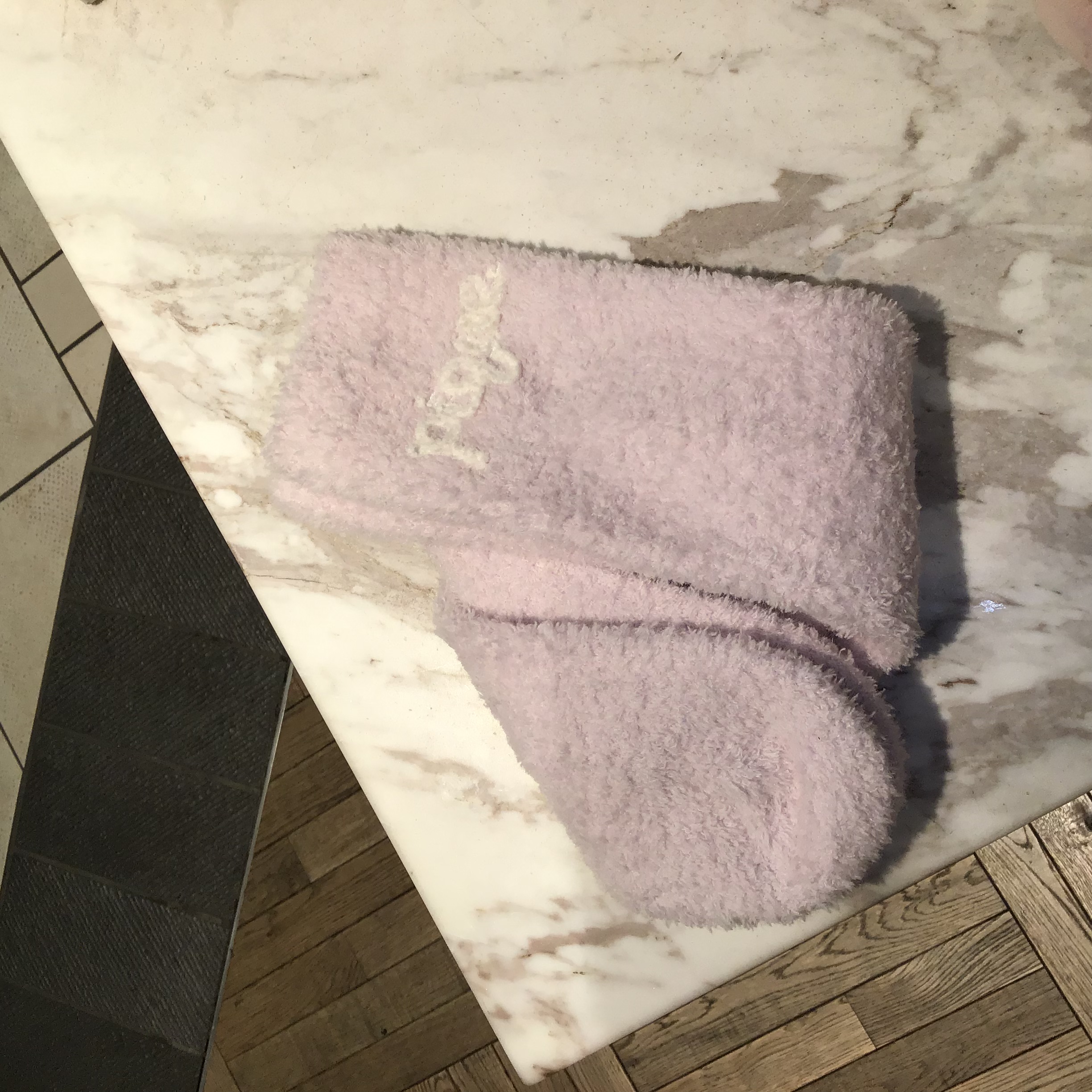 同シリーズのファーヘアクリップと合わせたり、フリルロゴのニットシリーズやハート柄チュールのルームウェアシリーズとコーディネートが楽しめる、大きめロゴ刺繍が可愛いふんわりニットのソックスと、ふんわりファーが足元を彩るルームシューズを紹介いたします☁️✨