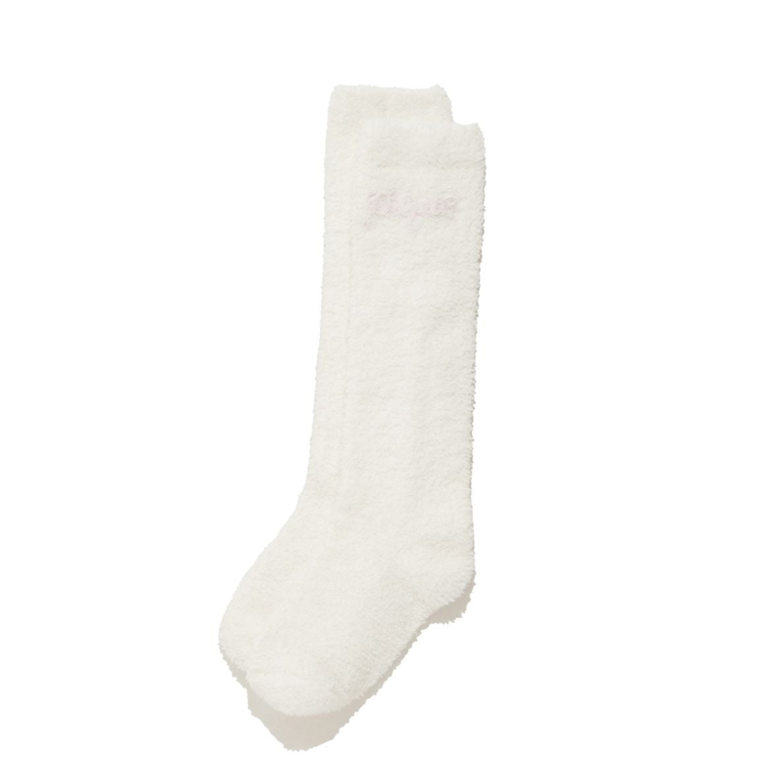 夢心地なふんわり感を味わえるふくらはぎ丈のソックス。もこもこした風合いのロゴ刺繍を大きめにあしらい、キャッチーに仕上げました。色は柔らかいオフホワイトとピンクの2色をご用意