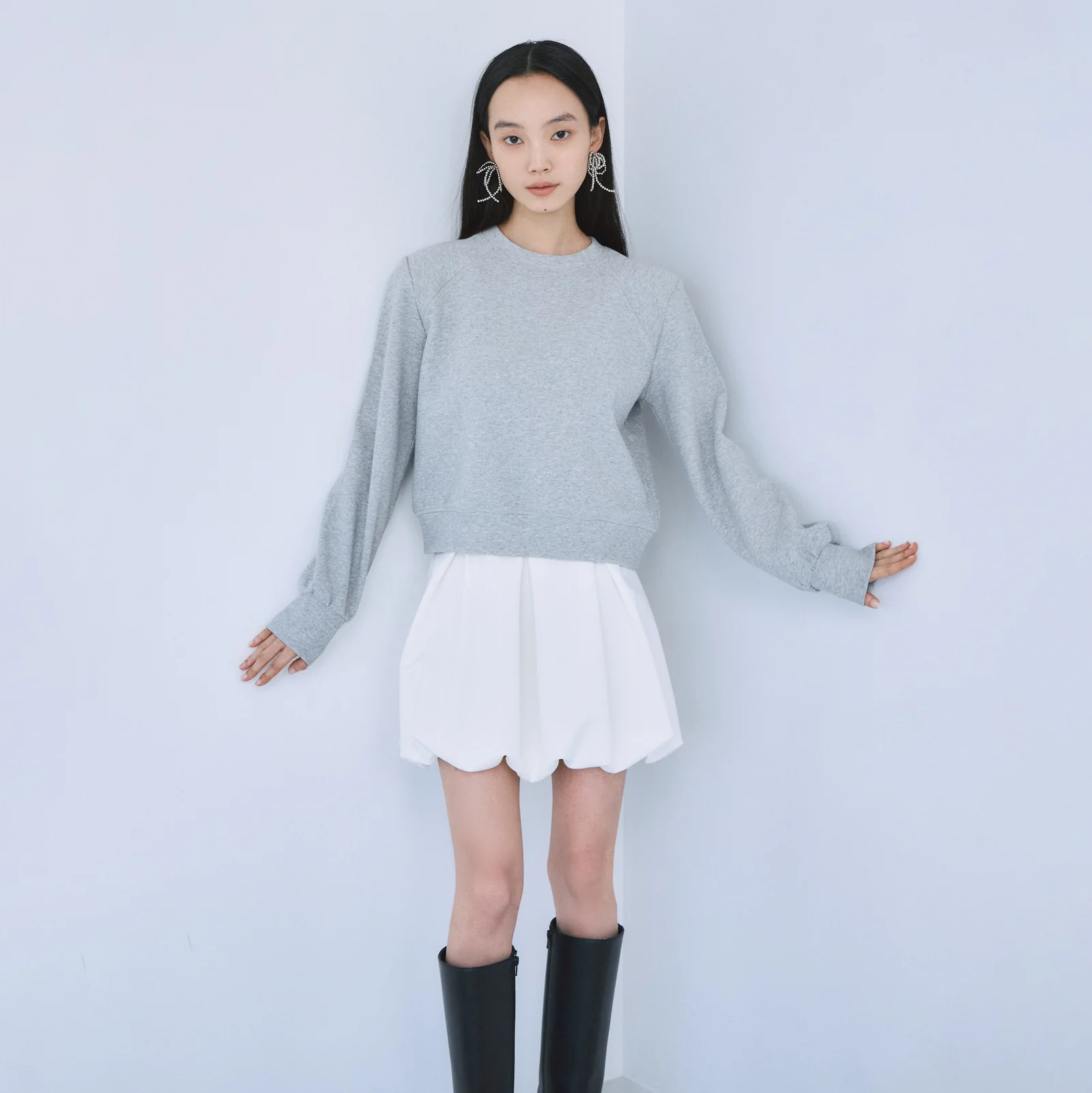 程良いハリとマットな質感が魅力のポンチ素材で仕立てたバルーンミニスカート。