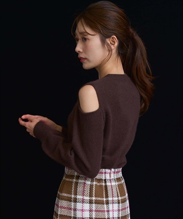 上質なフォックス混素材を使用した、肩開きデザインのニットトップス。