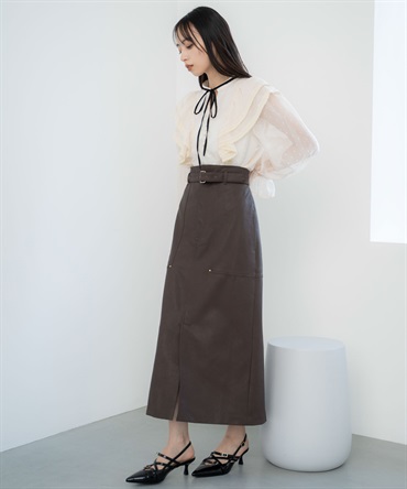 ポケットとステッチでさりげなくワークテイストを取り入れたタイトスカート。