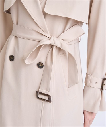 ウエストベルトを結ぶことで、華奢見えを叶える女性らしいシルエットに。