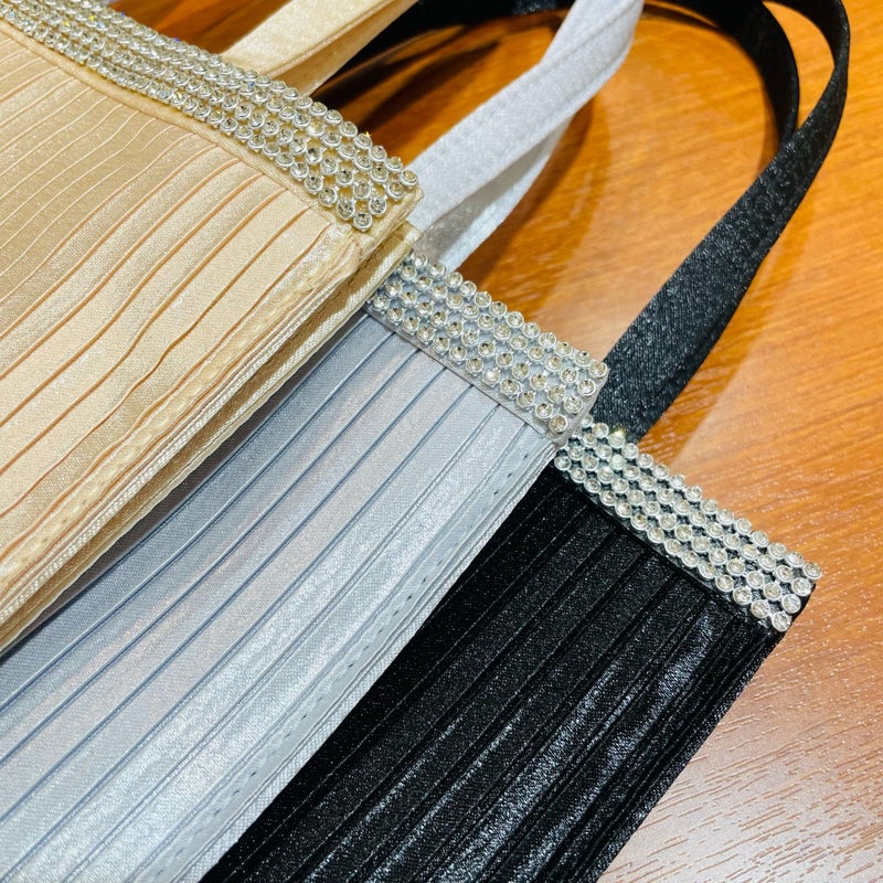 プリーツデザインにビジューが