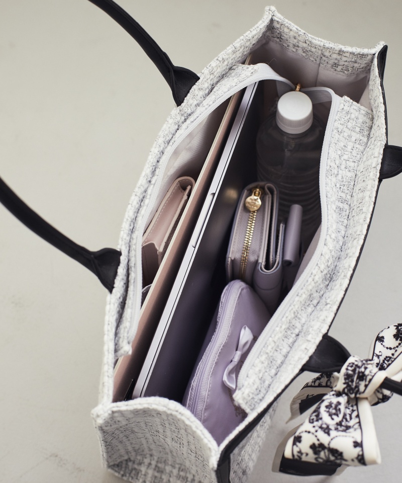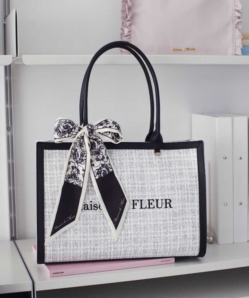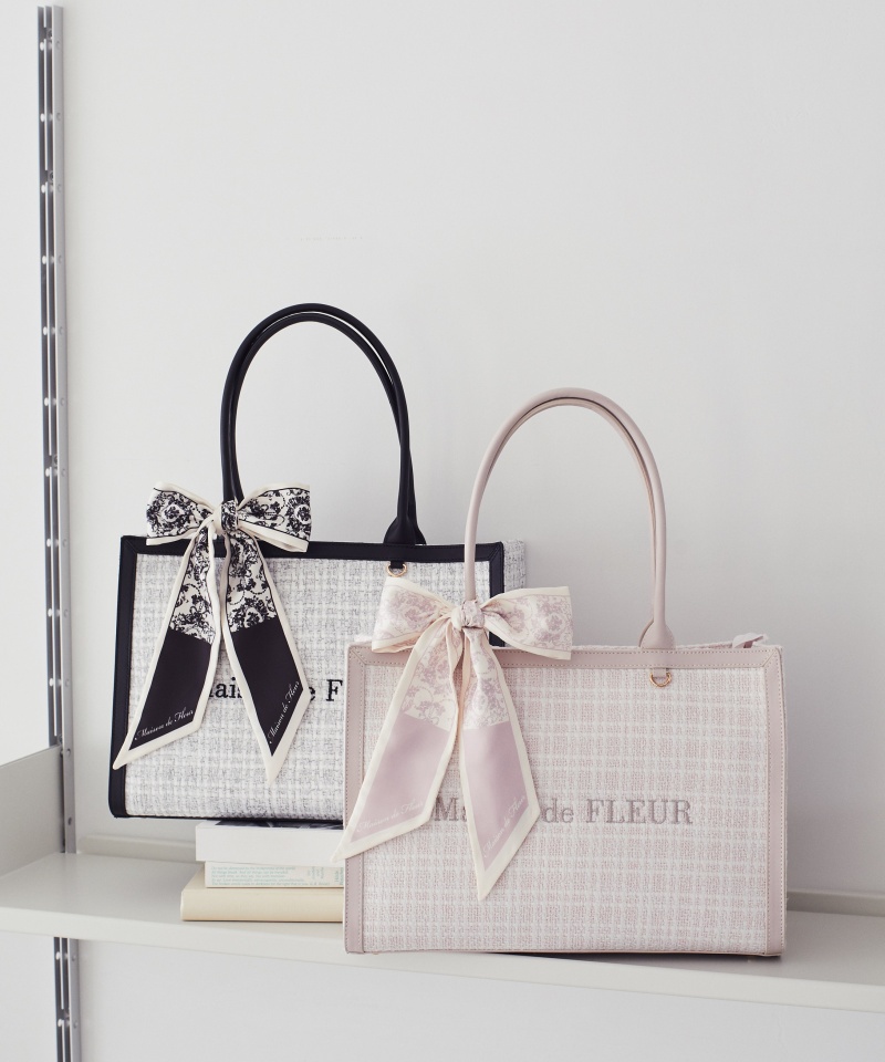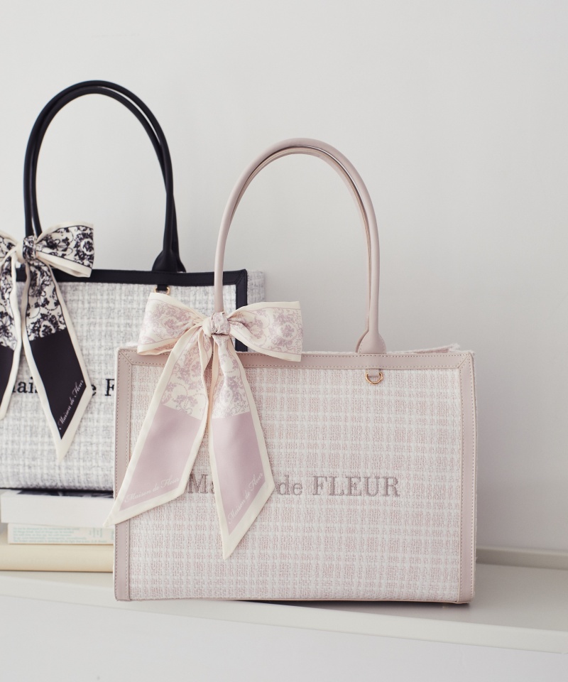 上品なツイード素材にオリジナルのスカーフがアクセントになったトートバッグ。