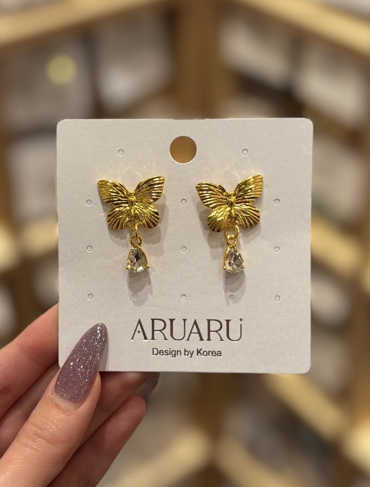 ゴールドとシルバーの2色展開のバタフライピアス🦋✨