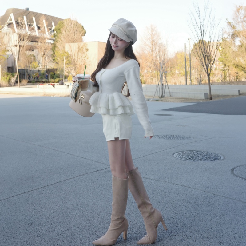 2段に重ねたペプラムが自然なボリュームを生み、ウエストを引き締めながら女性らしいメリハリシルエットを演出します🌸