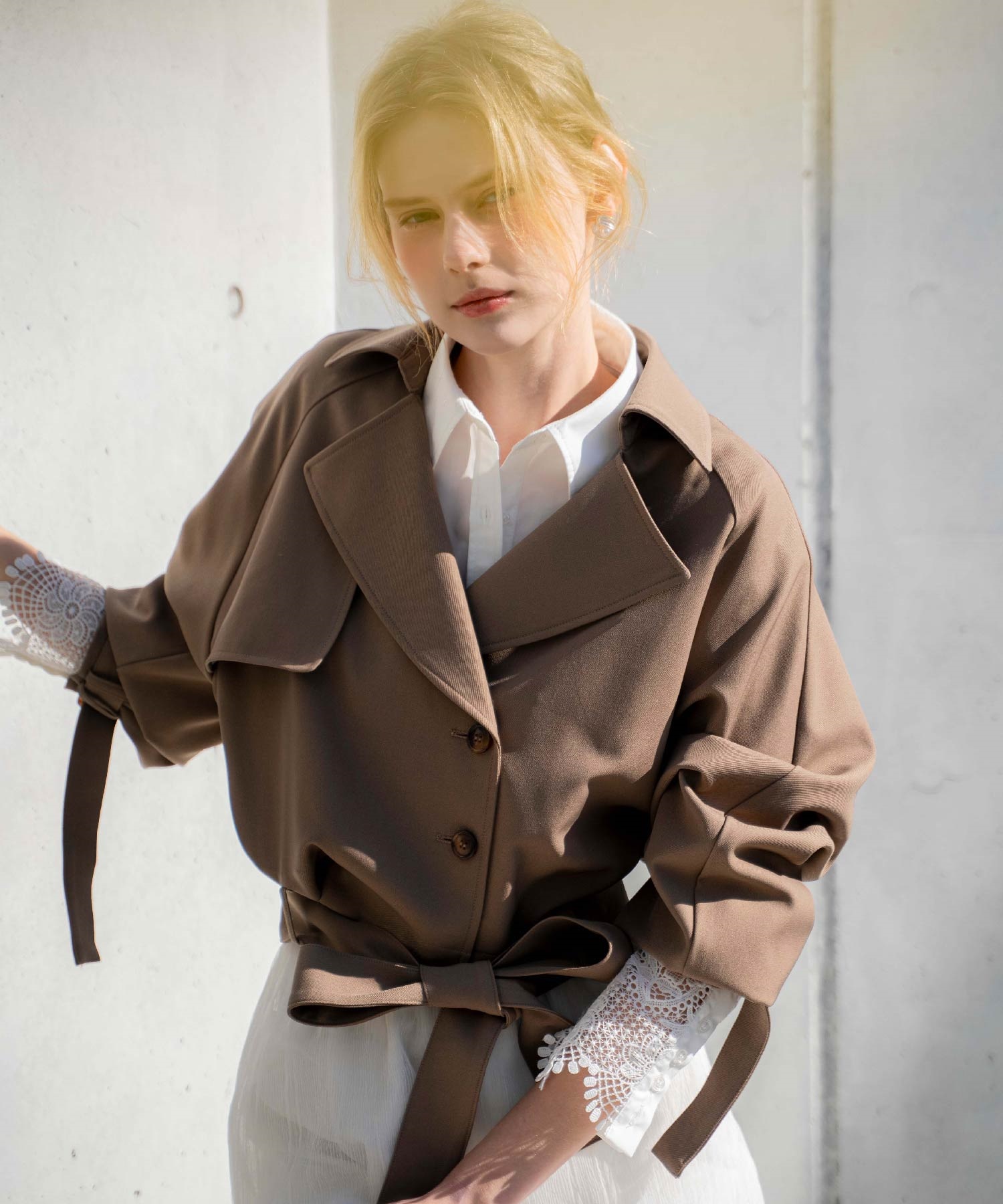 コンパクトな丈感でスタイルアップが叶う、今季主役のショートトレンチコート。