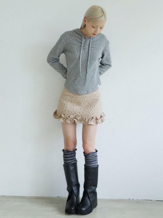 繊細な小花柄が目を惹くフーディートップス。