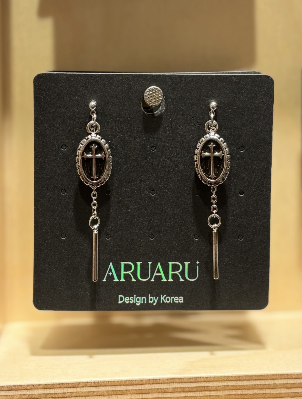 アンティーク調のオーバルパーツにクロスデザインを閉じ込めた存在感抜群のピアス✝️❤︎