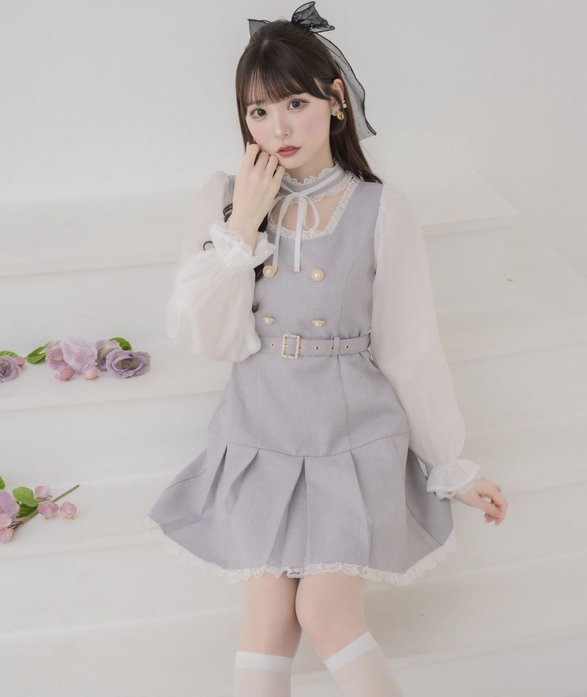 上品さとクラシカルな雰囲気を兼ね備えたワンピース。透け感のあるシアースリーブで軽やかさをプラスし、全体的にお育ちの良さそうな上品な印象に♪ウエストベルトでメリハリのあるシルエットに仕上げ、腰の切り替えプリーツがデザインに立体感と奥行きを添えます。