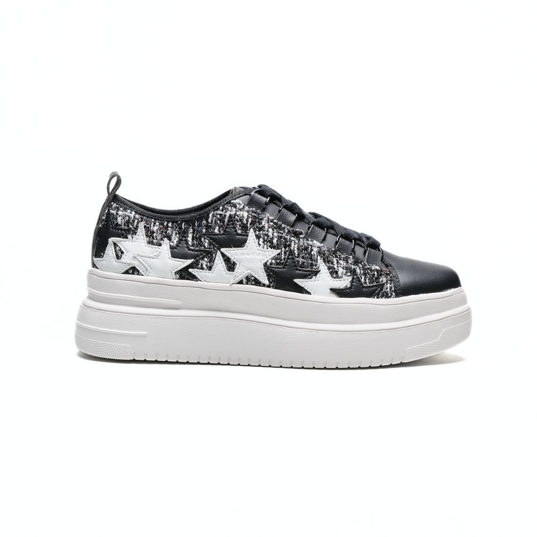人気モデルから、さらに特別な1足となるツイードが数量限定で到着。スタイリッシュな星のデザインでも、女性らしく仕立てるツイードで愛嬌をプラス。大胆なデザインと洗練されたフォルムが融合した、個性派プラットフォームスニーカーです。