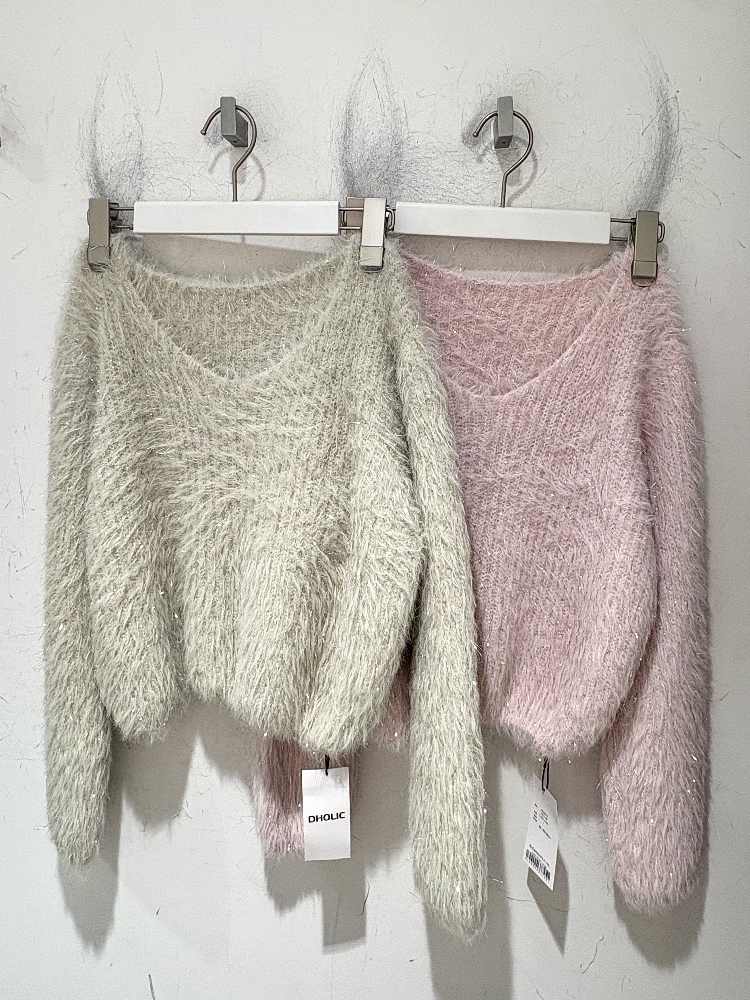 ○ Vネックラメシャギーニット