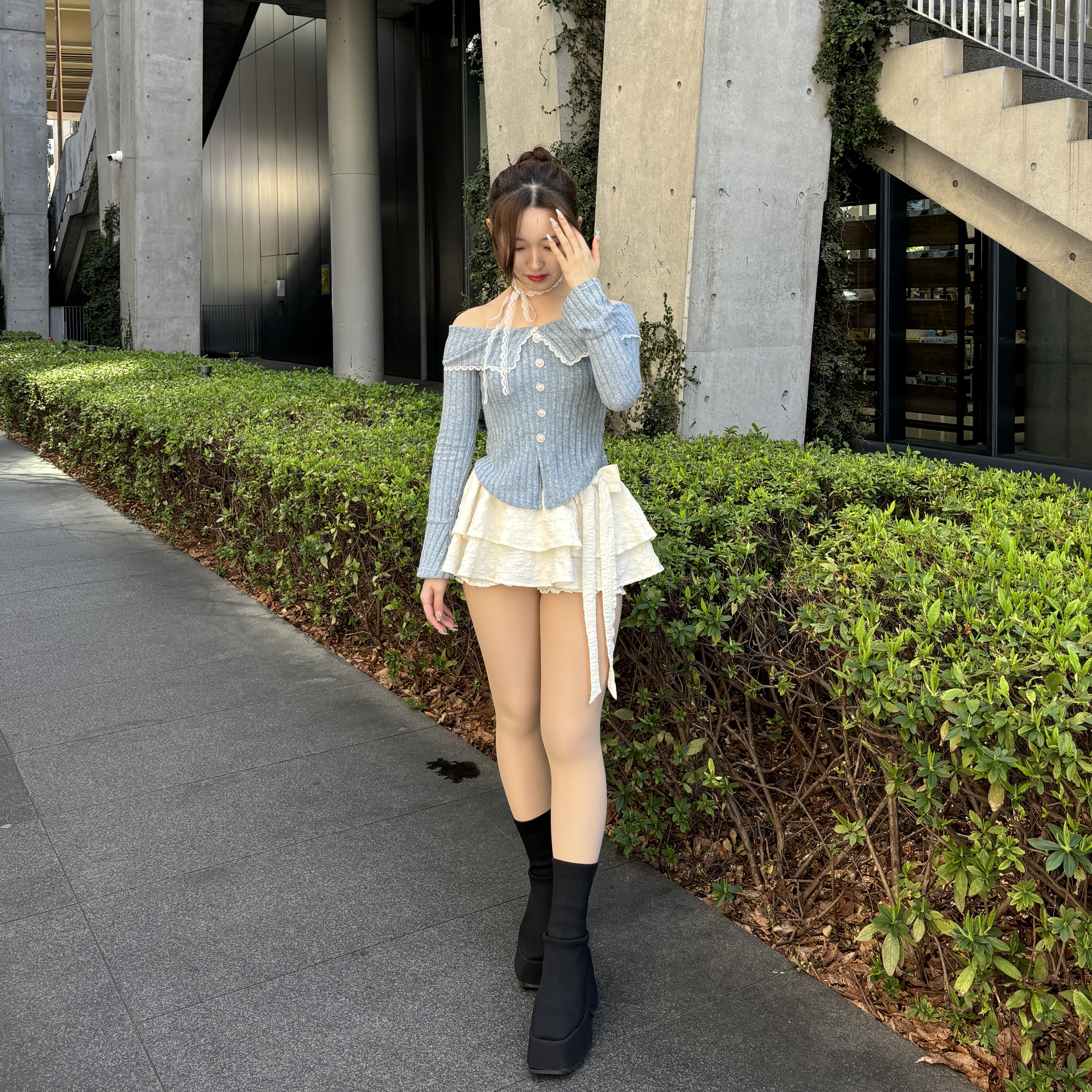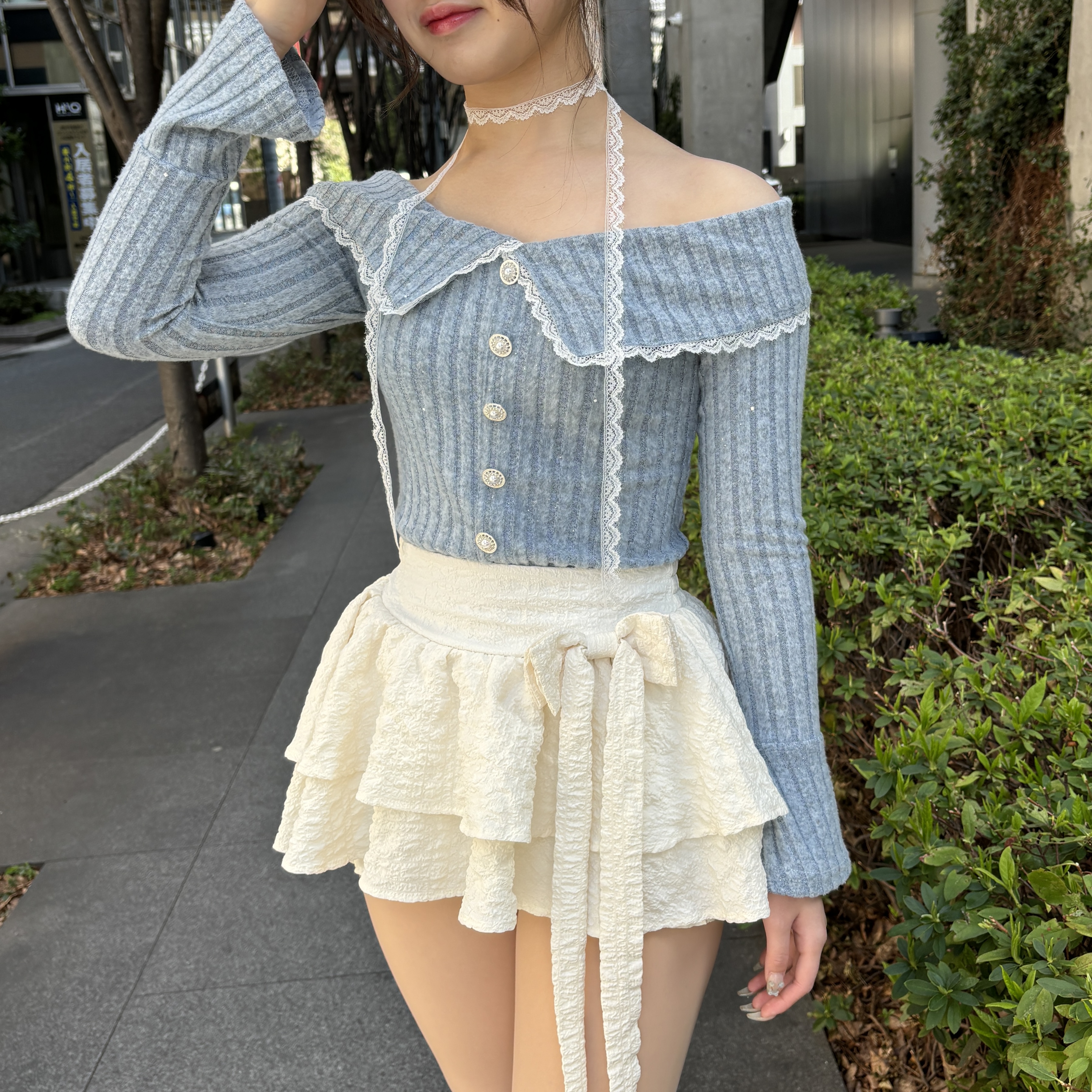 他にもパールのボタン、スカートのリボンなど、可愛いポイントが詰まっていてこれ一つでコーデが完成します🪄