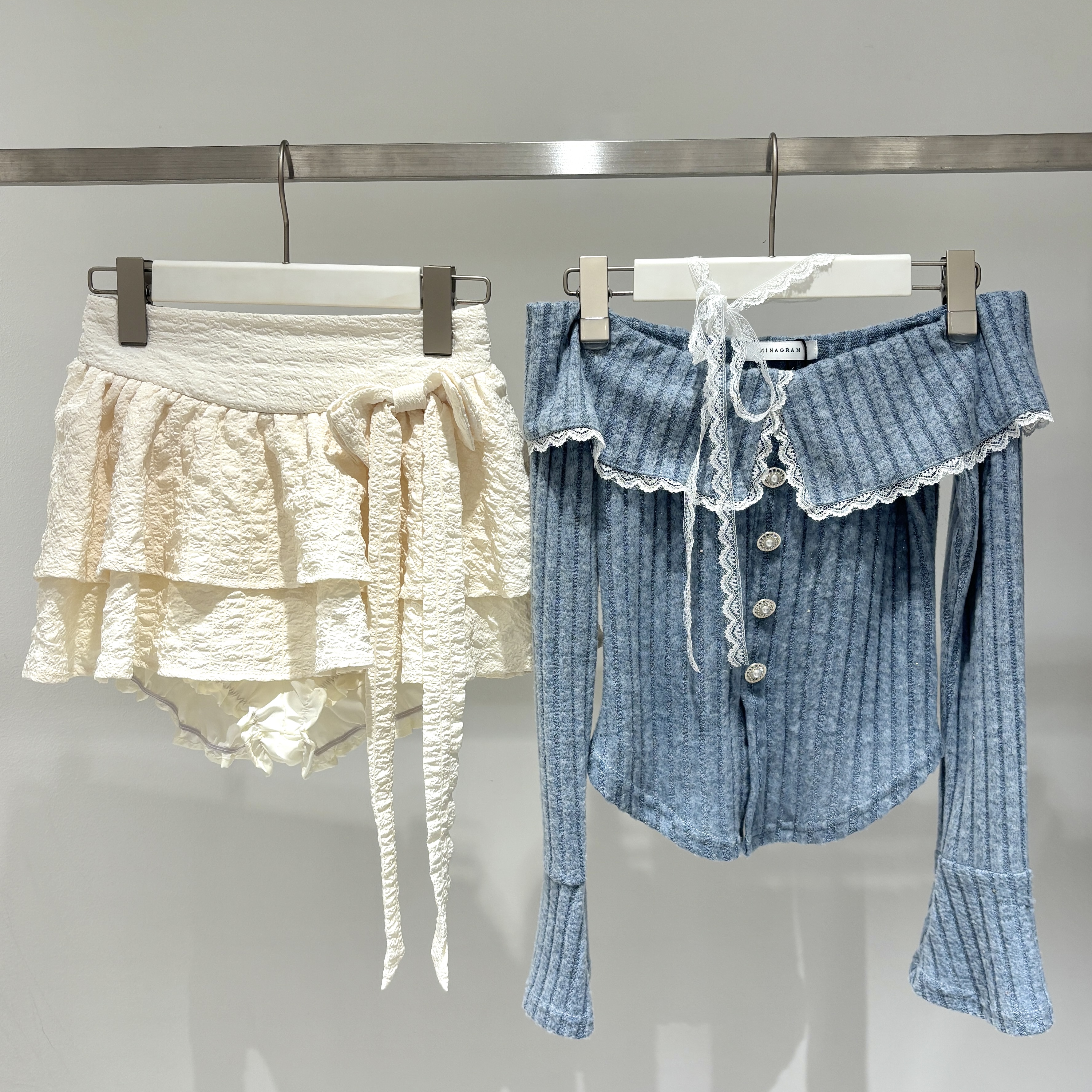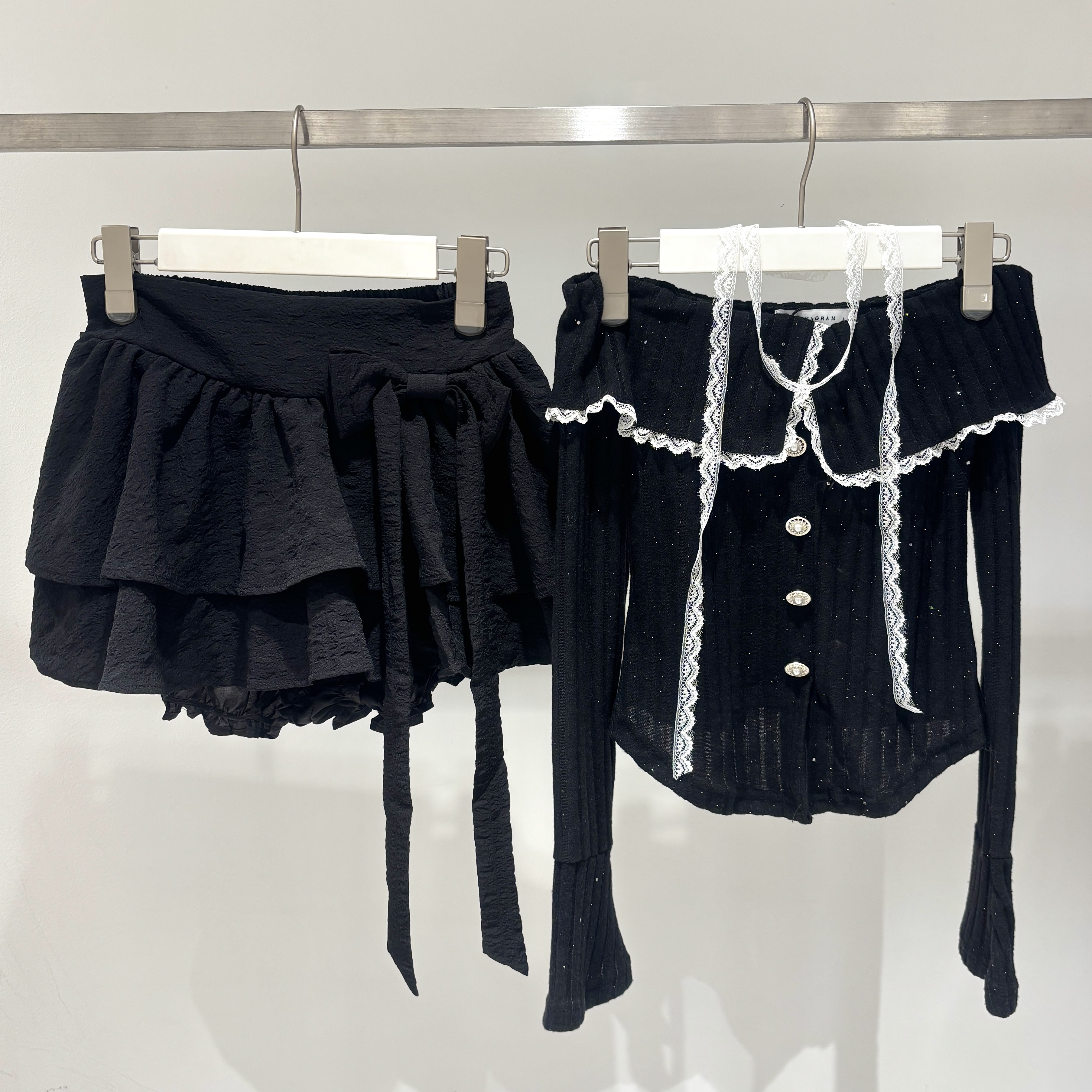 レースデザインが可愛いオフショルセットアップ🤍