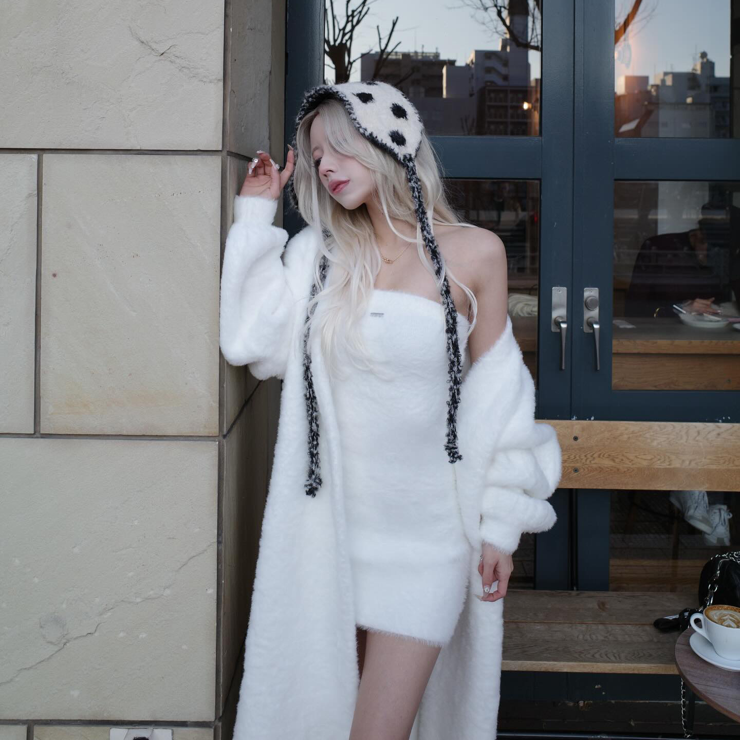 ふんわりシャギー素材が可愛い、ワンピース×ロングカーディガンのセットアイテム🧶💗 程よくフィットするベアワンピがデコルテをきれいに見せ、縦ラインを強調してすっきりとした印象に仕上げてくれます✨🎀 さっと羽織れるロングカーディガンがこなれ感と体型カバーを叶える、季節感たっぷりの愛されセットです🫶🌸