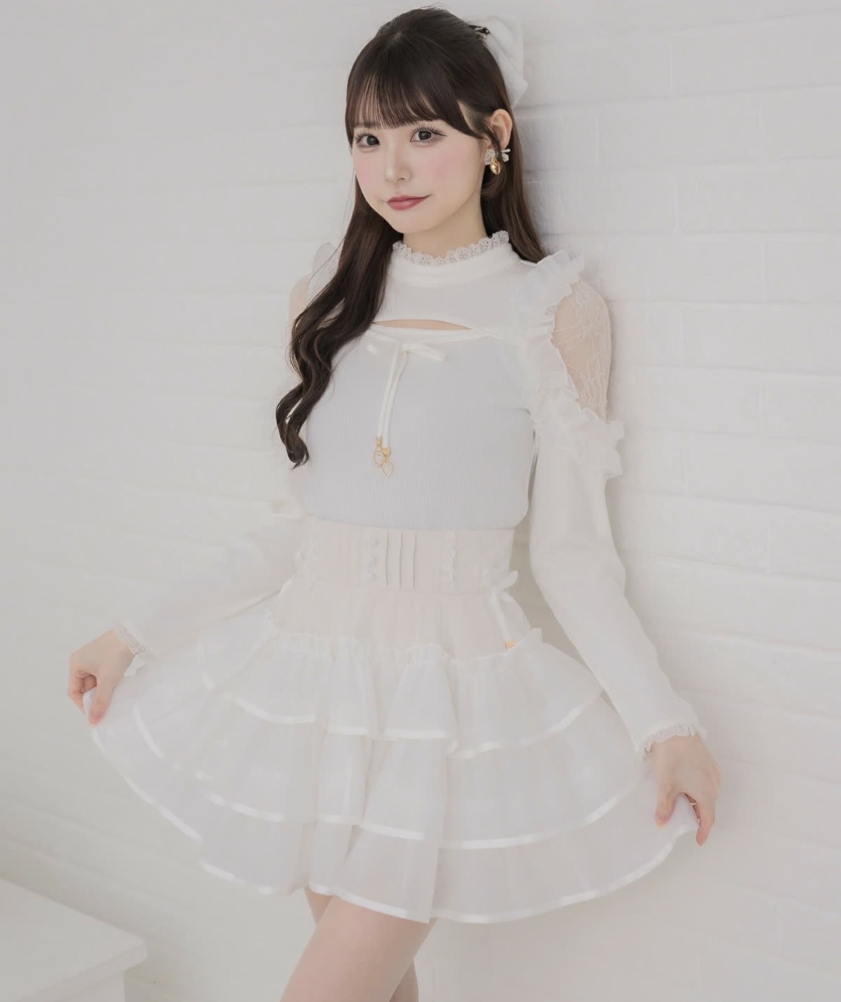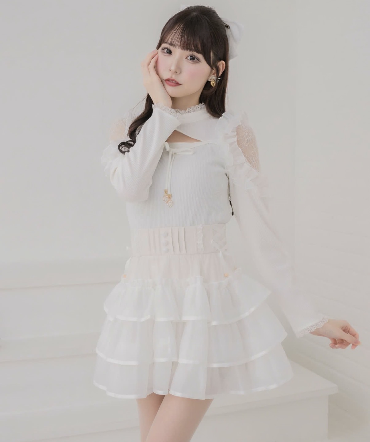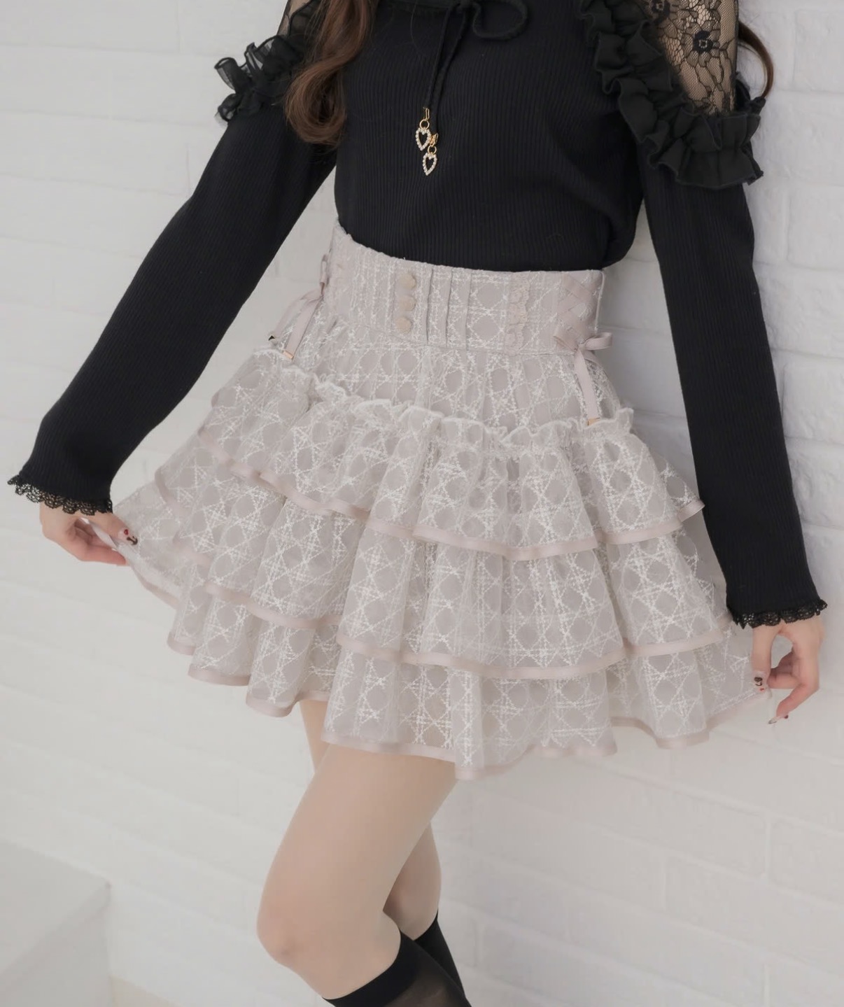 フリフリが愛らしい、ボリューム満点のミニスカパン♪バラ釦とサイドのレースアップリボンがさりげないアクセント◎チェック柄のピンクベージュはコーデの主役に、ブラックとホワイトは合わせやすいシンプルカラーです。