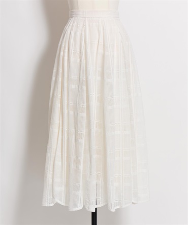 チェック柄レースが印象的な、たっぷりフレアの軽やかなスカート。