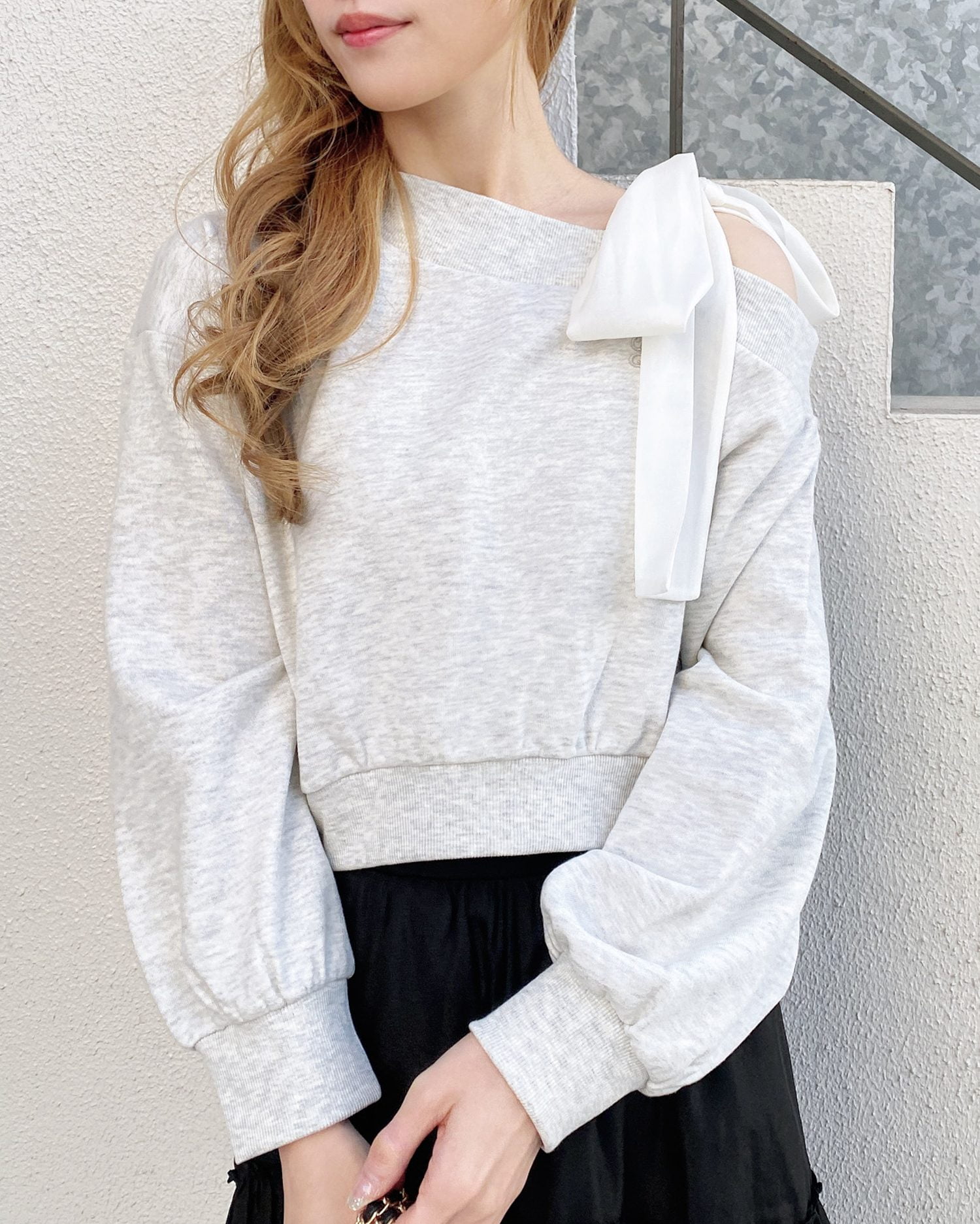 ⚫︎1261-100115 スウェット肩リボン胸ロゴワンショルトップス