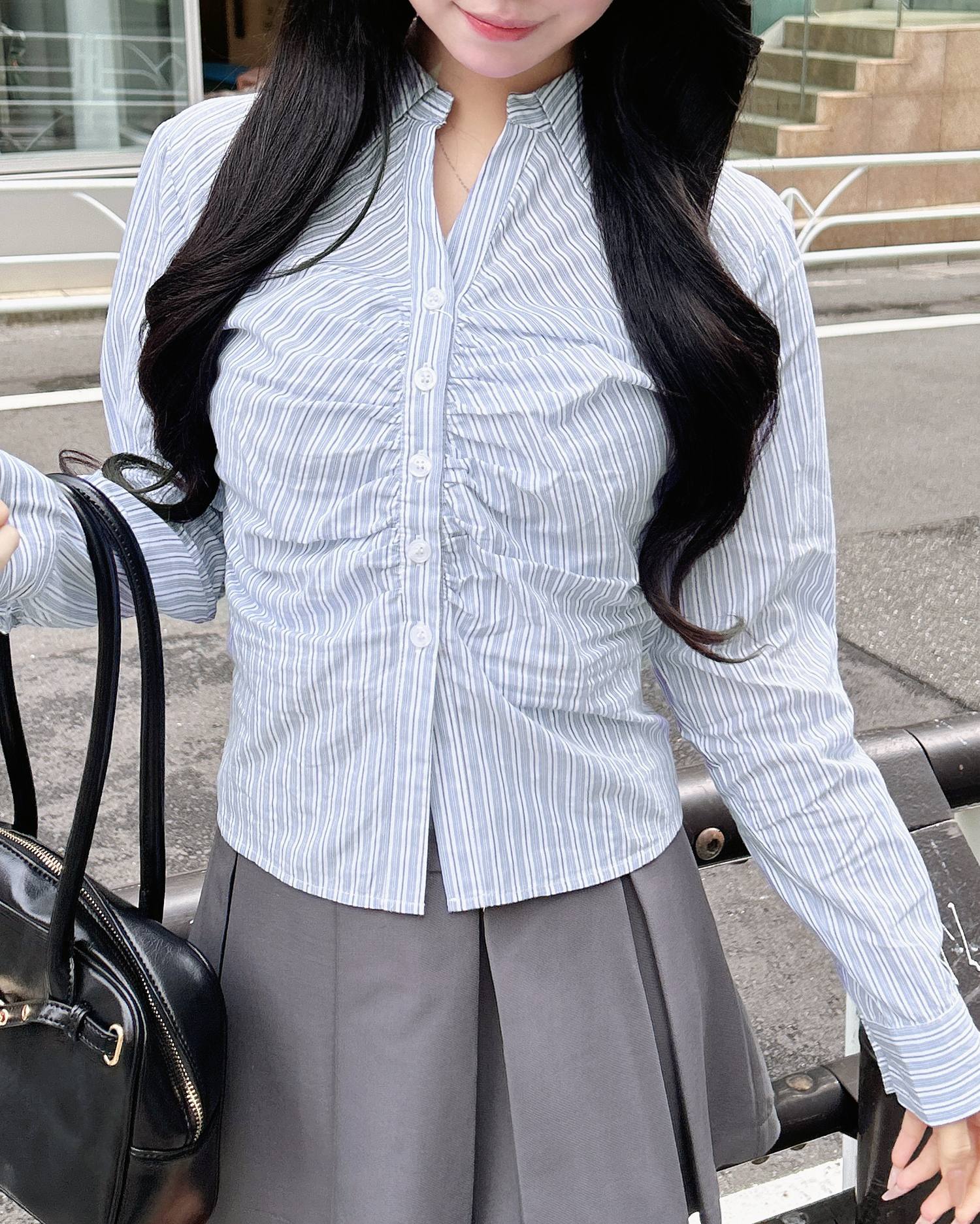 胸元のギャザーでメリハリシルエットに仕上げたシャツが入荷致しました🎶