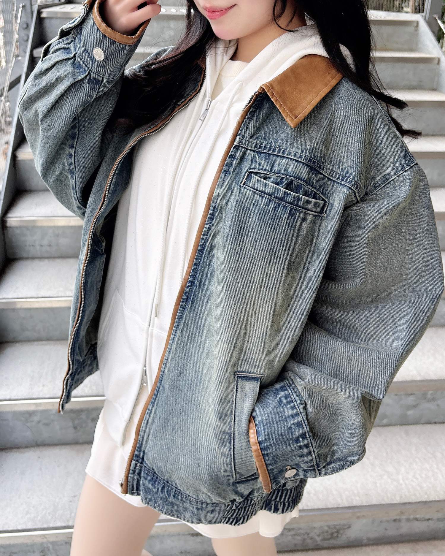 ⚫︎1261-400079 襟袖異素材フロントジップデニムジャケット