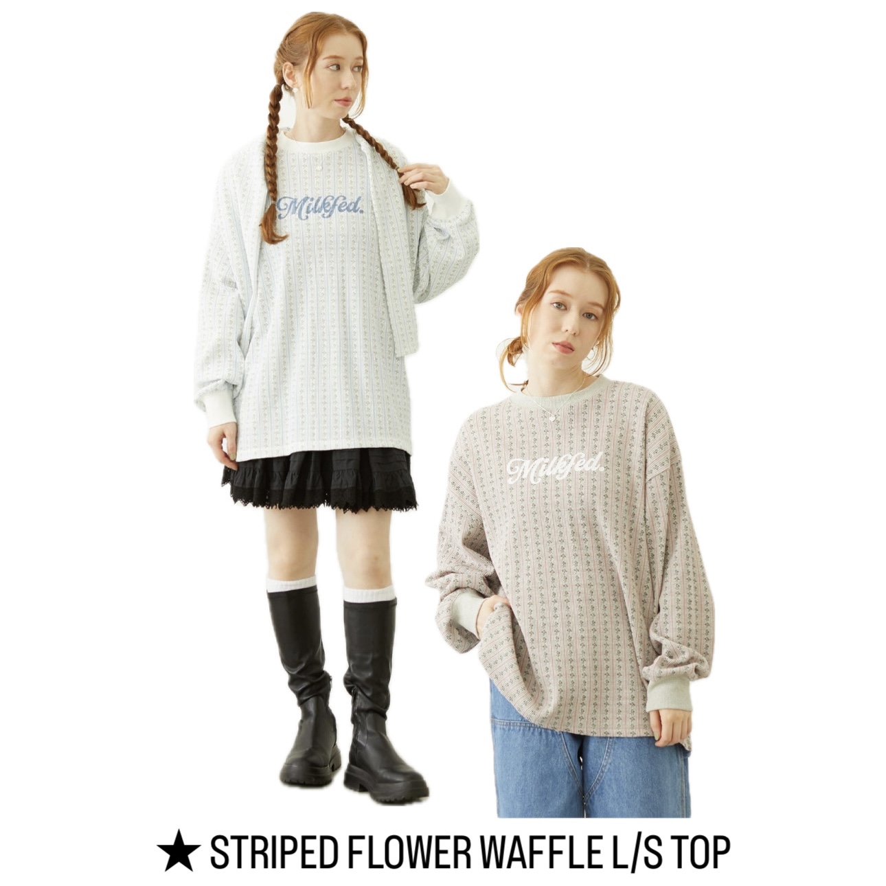 同じ素材の生地で、ふわっとした生地感なのでガーリーコーデや、カジュアル、ストリートコーデにも万能に使える、甘すぎないアイテムになってます!!