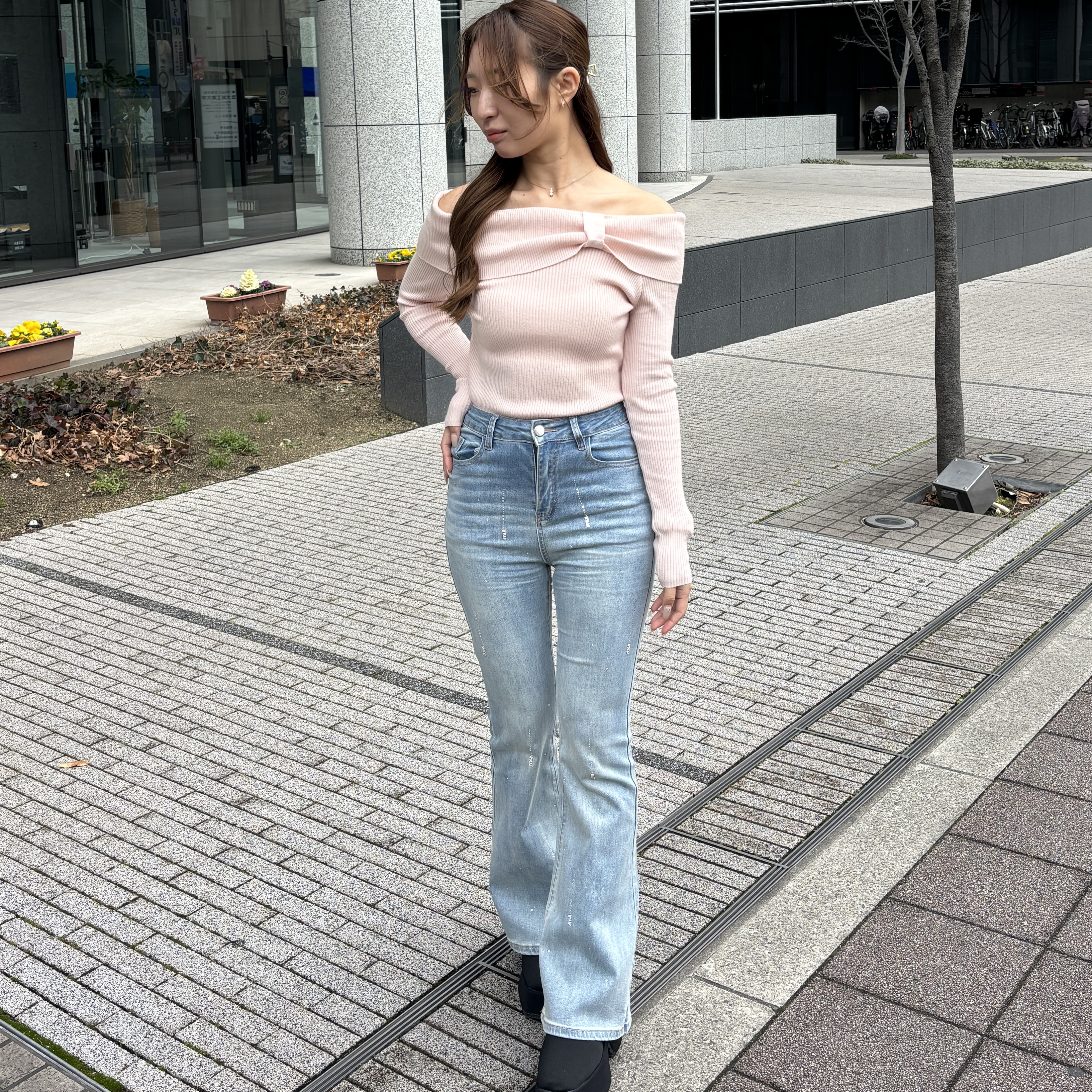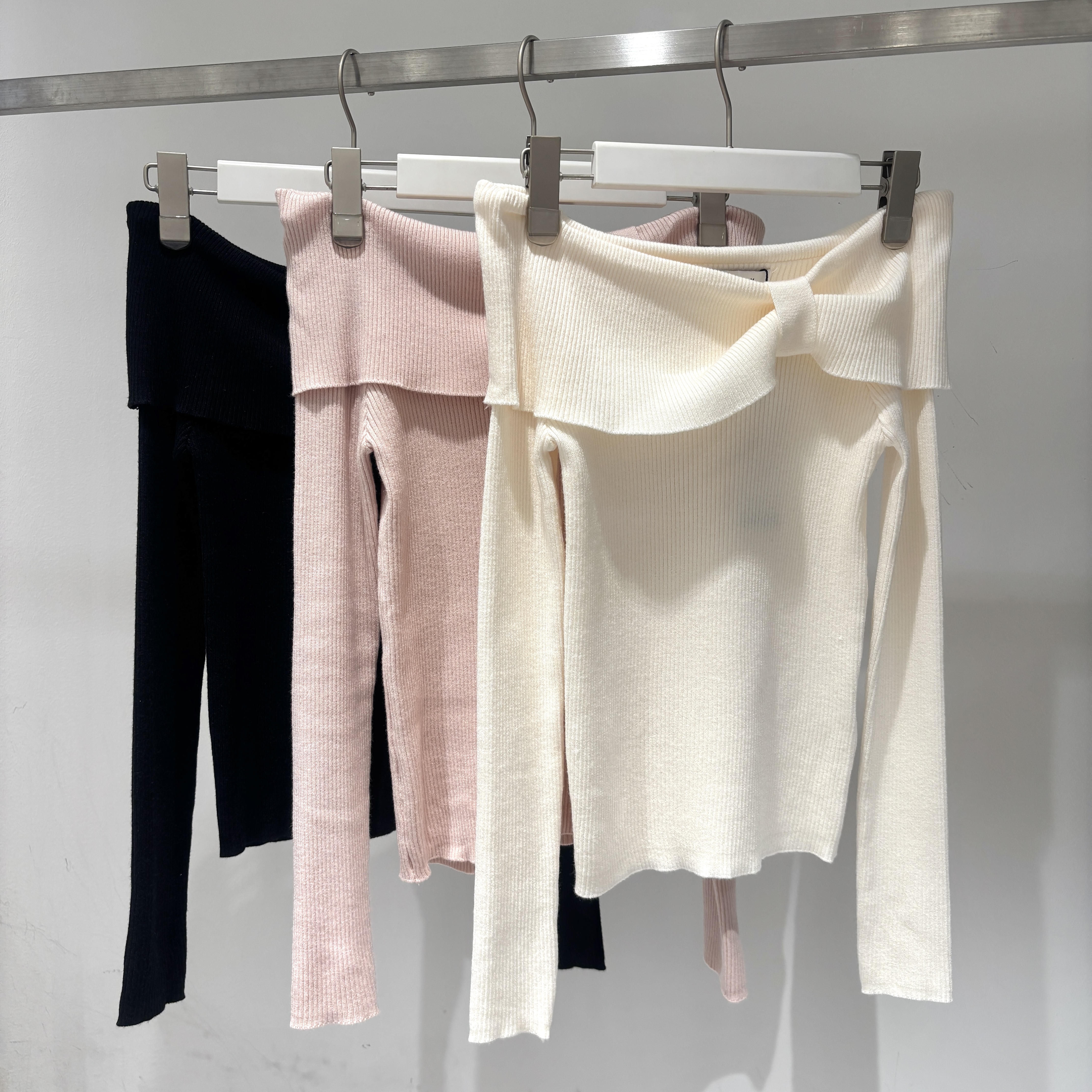 胸元の大きなリボンが魅力的な、これからの時季にぴったりな薄手ニットです🍀