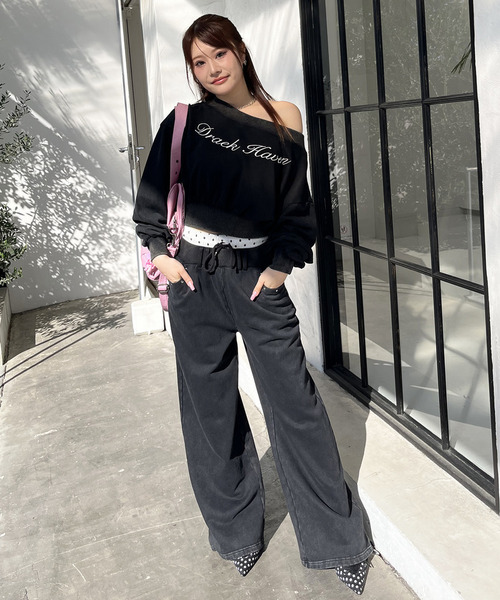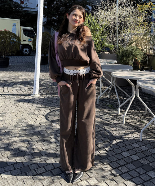 一番上のウエストはドット生地で可愛く今っぽく、後ろにはロゴ刺繍を添えてトレンド感をプラスしました。