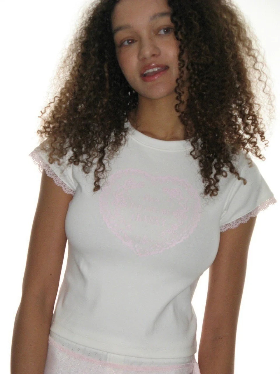 袖口の繊細なレースとピクセルアート風のハートが織りなす「CRANK」らしい甘辛なデザインに、Y2Kや韓国ストリートのトレンドを象徴するタイトでシルエットも綺麗に着こなせます!