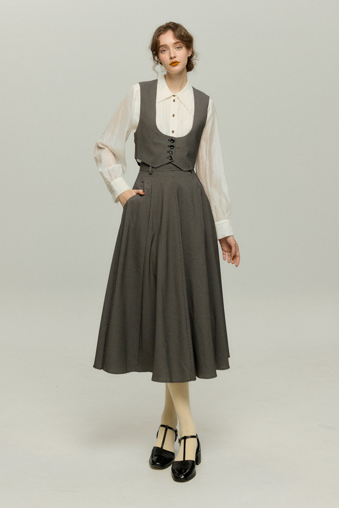 ショート丈のベストはハイウエストなアイテムと組み合わせるのがおすすめ☝️