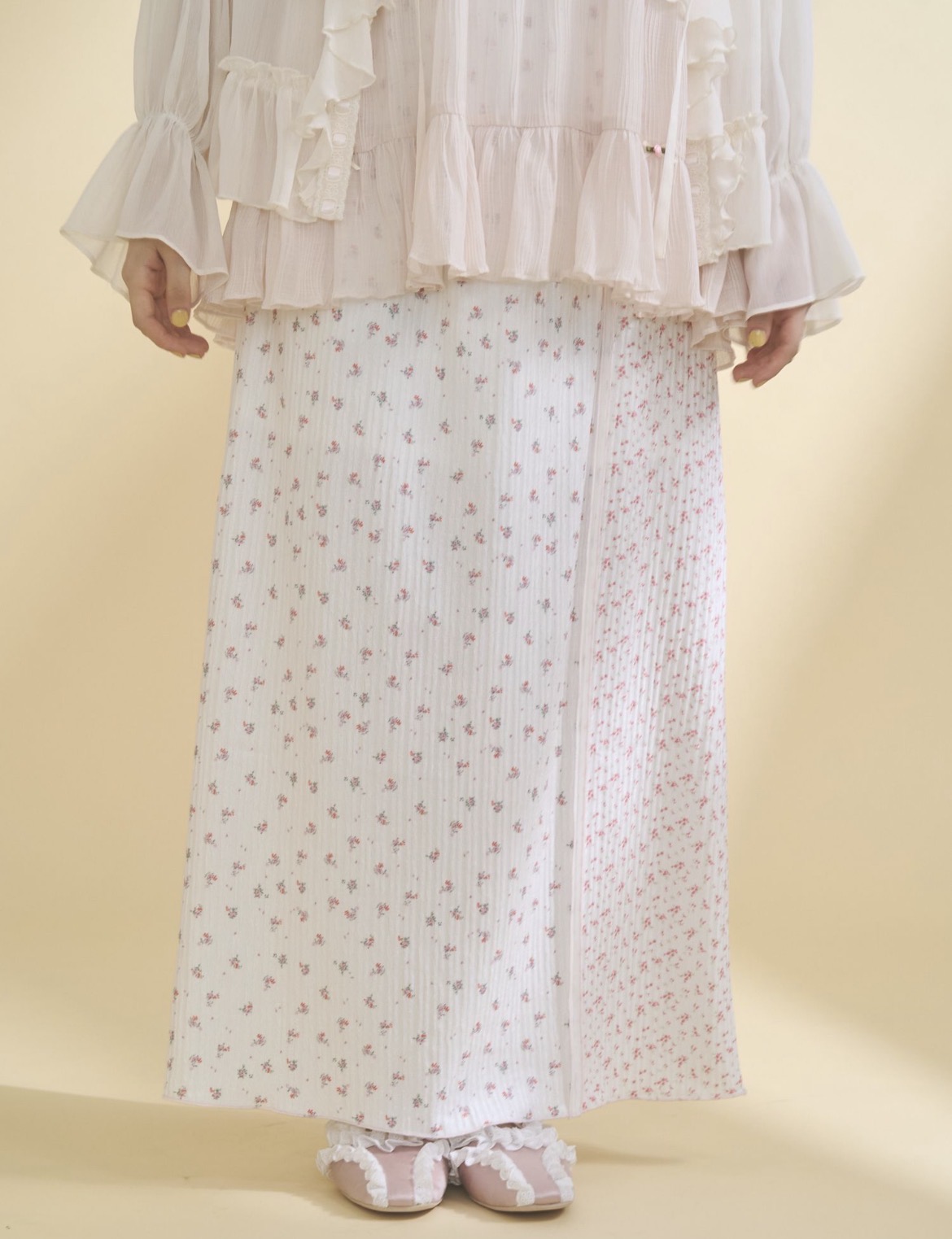 2種類の生地を組み合わせた遊び心のあるストレートスカート。