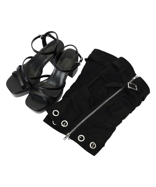 サンダルとレッグウォーマー付きのサンダルブーツ。