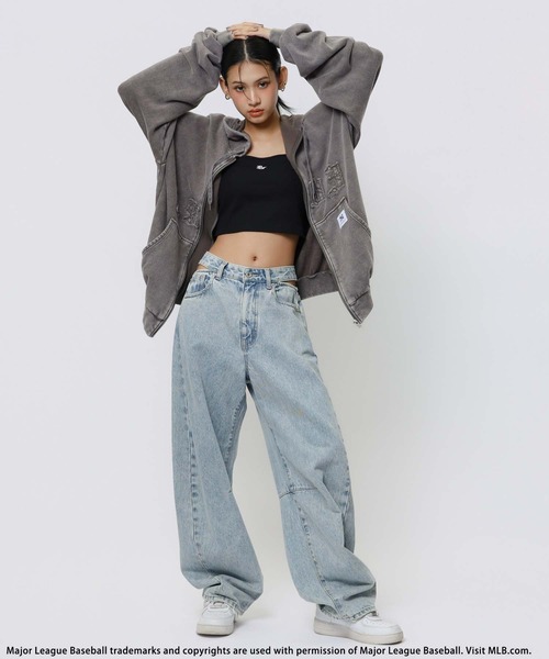 インナーはシンプルなTシャツやショート丈トップスを合わせて、ジップを開けて抜け感を出しても◎。
