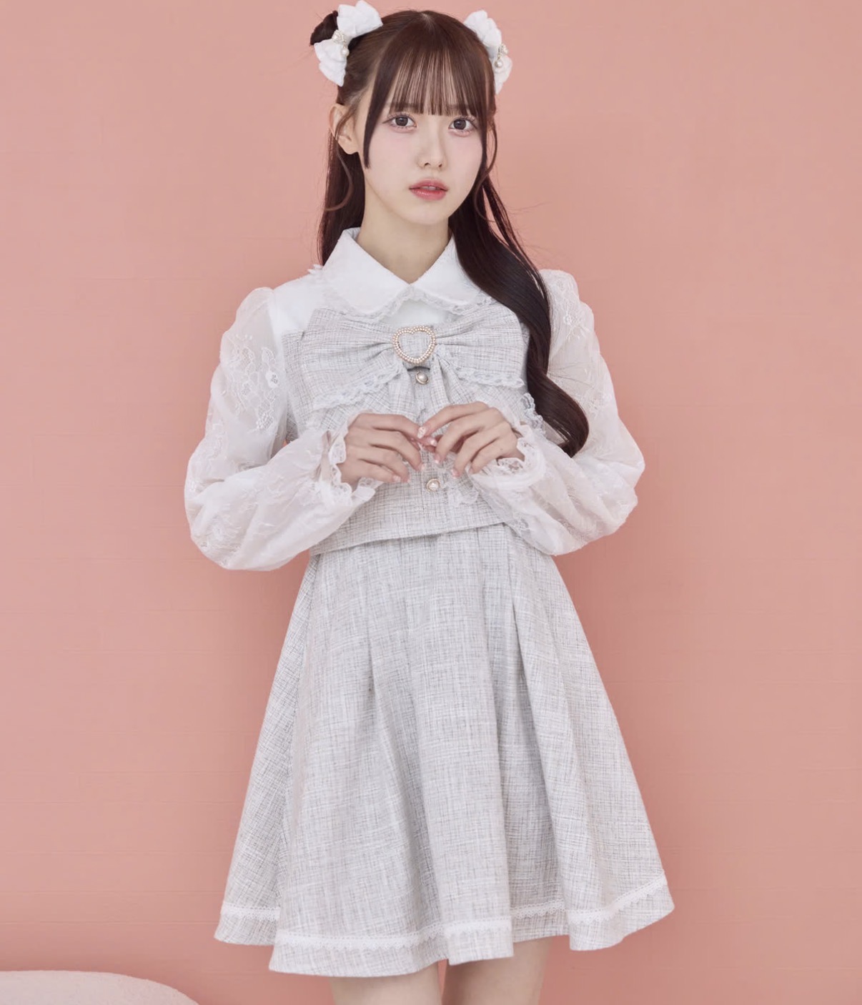 存在感のある大きなリボンが視線を集め、上品さの中に遊び心をプラス♡ツイード素材の落ち着いた質感と、レーシーな袖で程よい抜け感を演出。まるでレイヤードしたかのような切り替えデザインが、立体感のある洗練されたシルエットを叶えます。