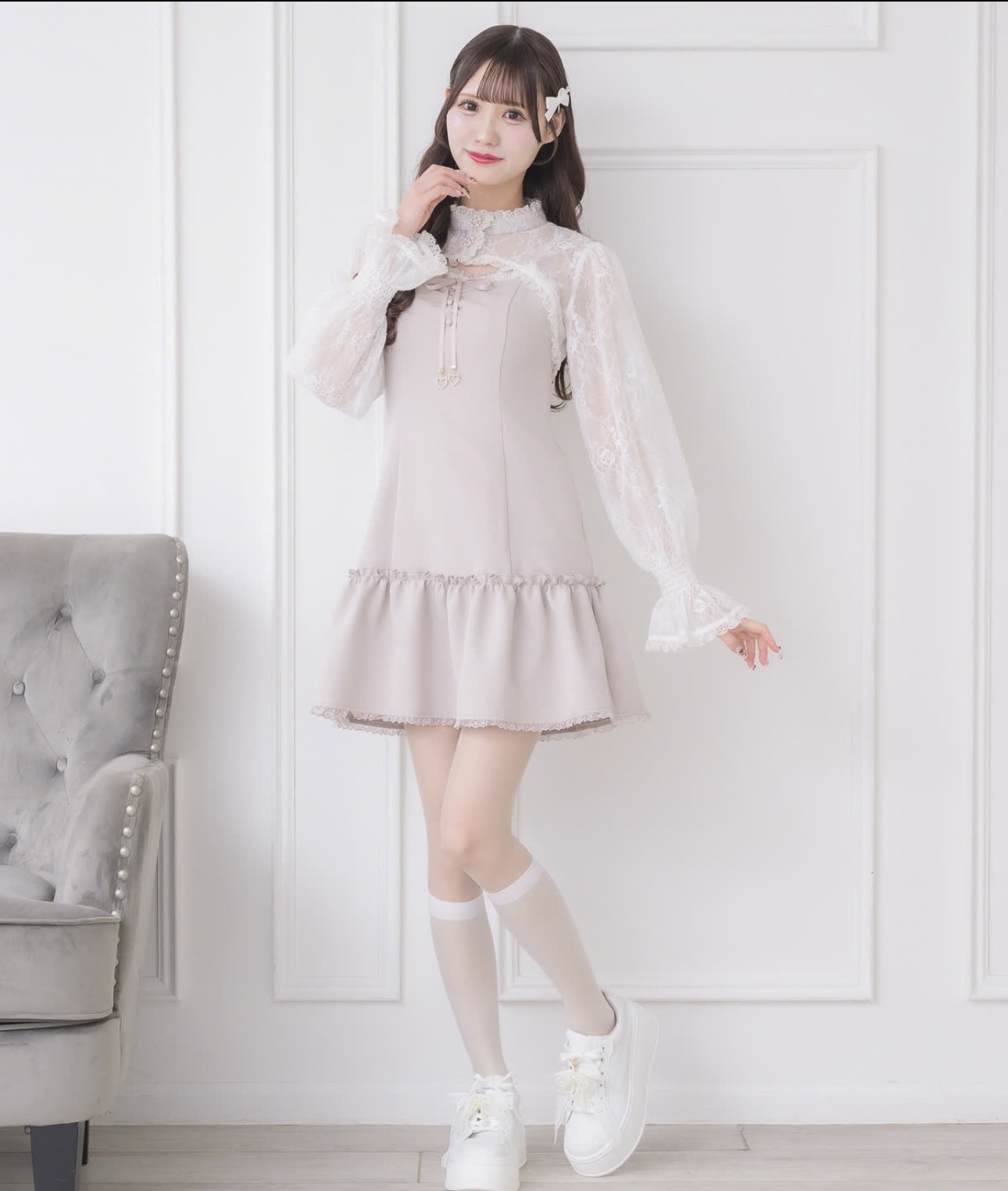季節の変わり目にちょうどいいセットアイテム。レースボレロがほどよい抜け感をプラスしてくれます。キャミワンピースは胸元のギャザーがレディな印象に♡ウエストはカーブを持たせつつ、広がりを抑えたラインで大人っぽいシルエットに◎