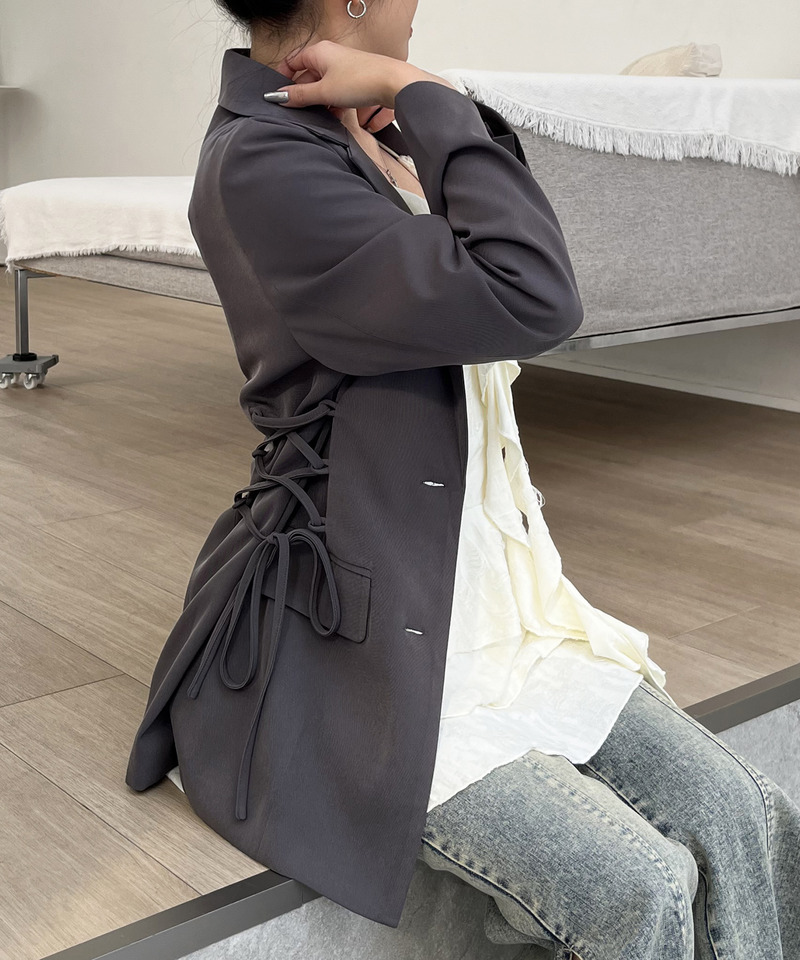 サイドにレースアップデザインを施した、くびれ強調テーラードジャケット。