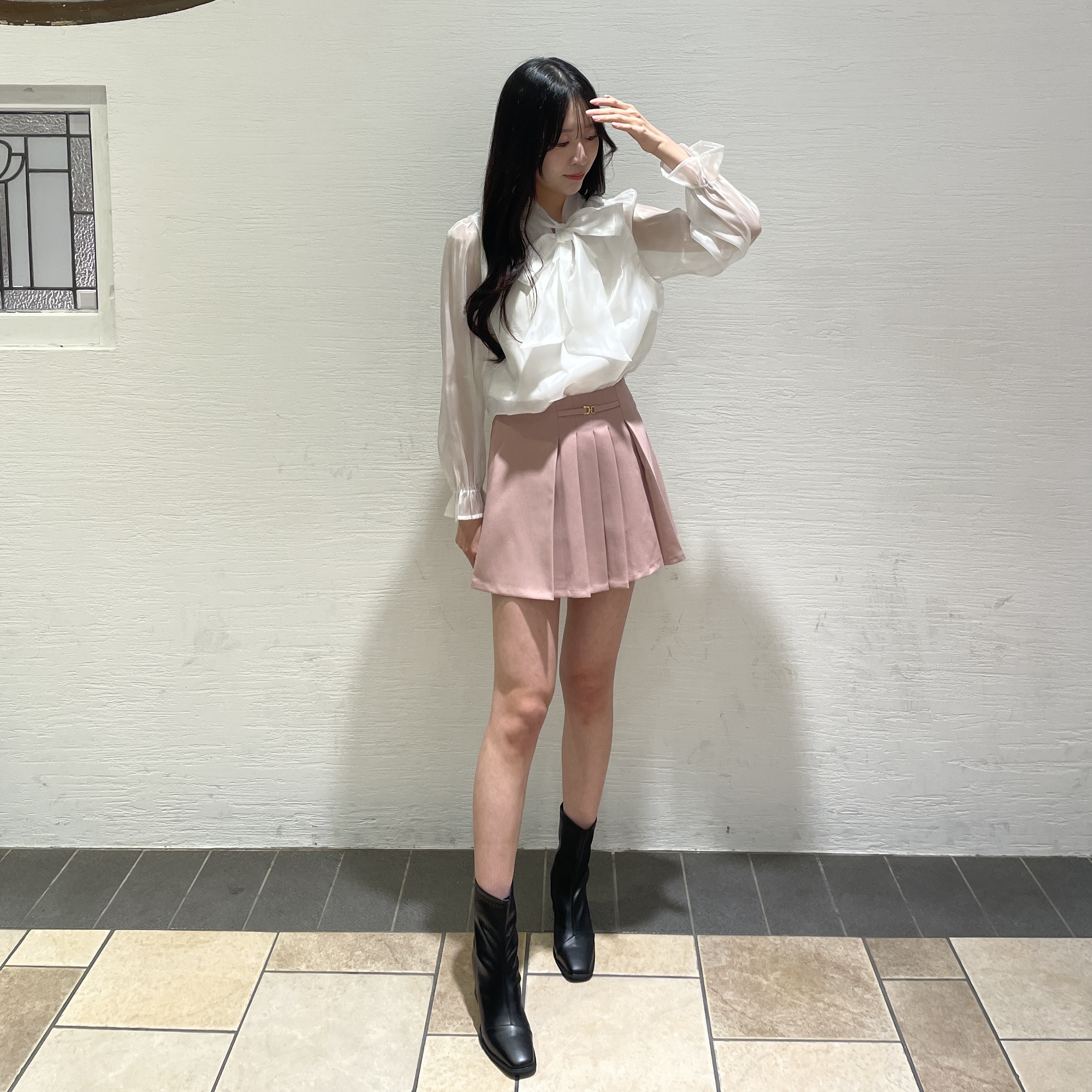 リボンタイブラウス(BL121008) /ゴールドチャームプリーツミニスカート(SK121004)