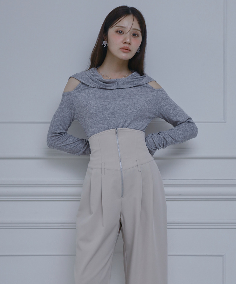 オフショルフーディーカットトップス