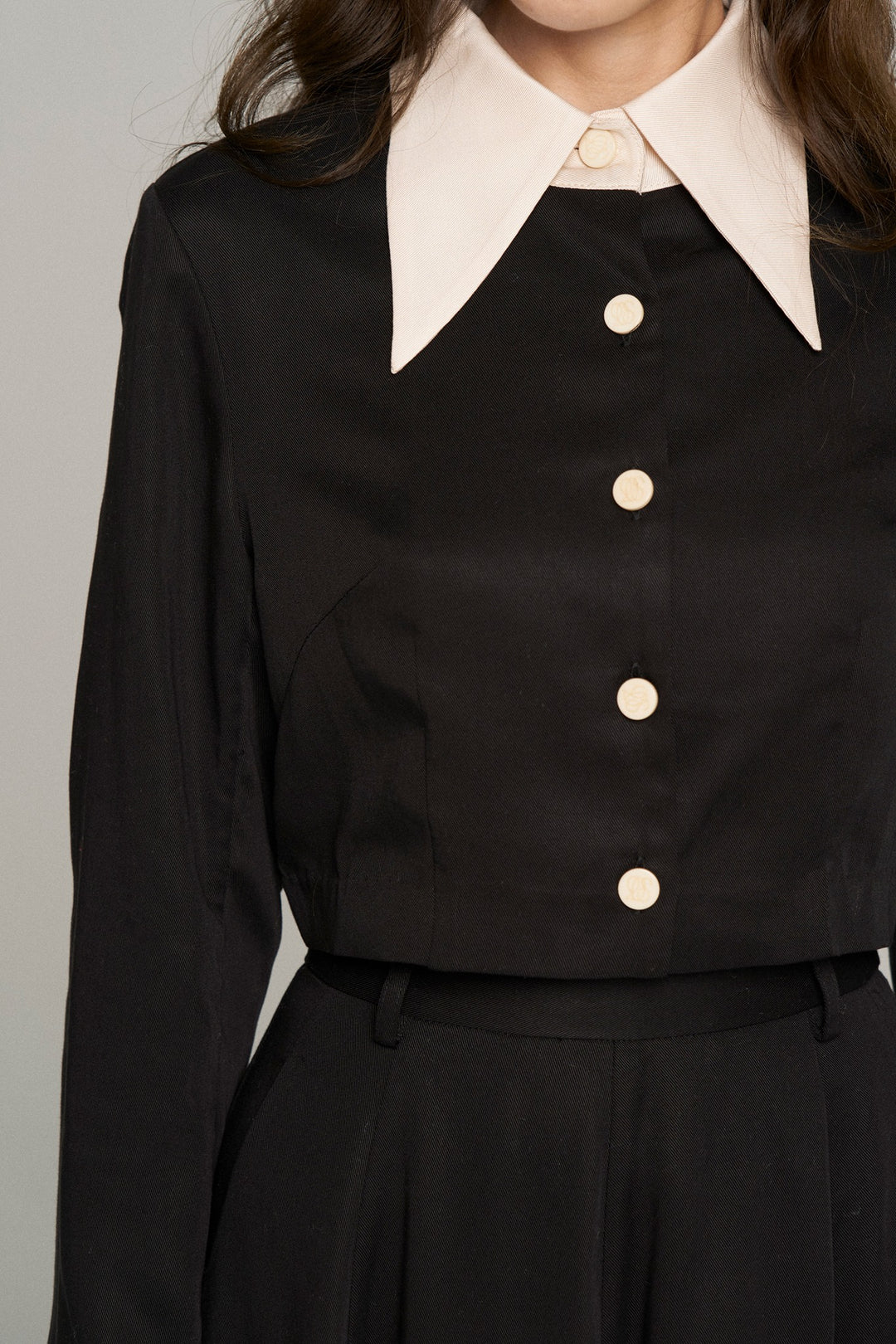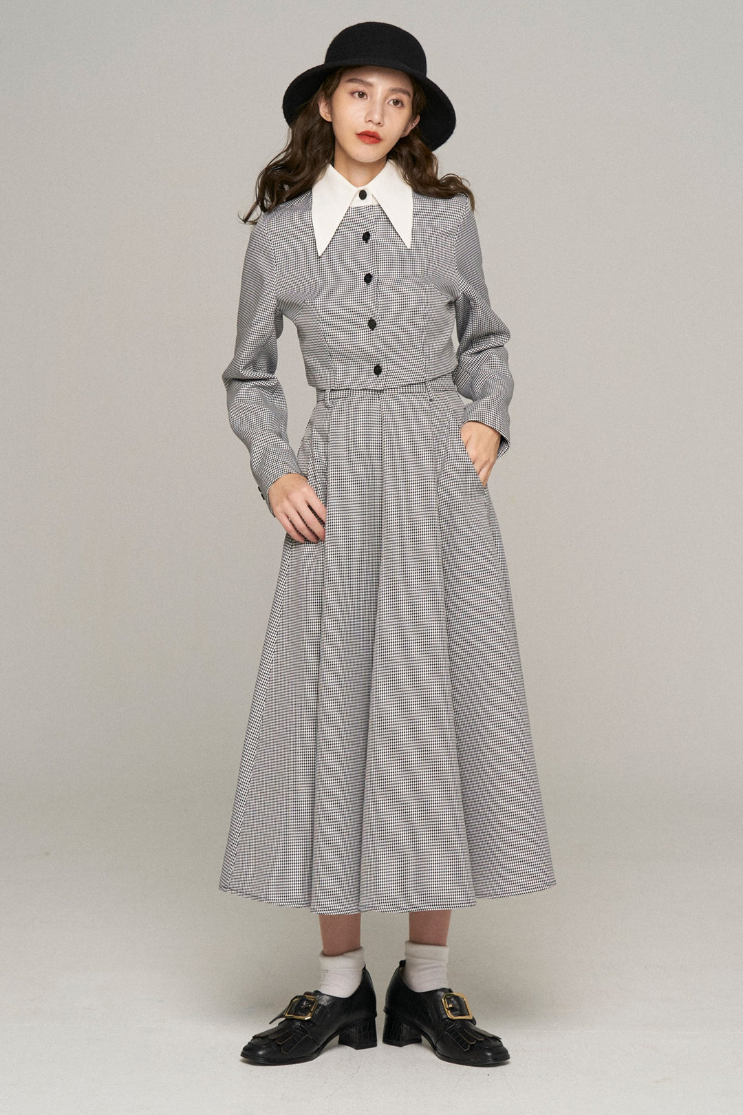 クロップド丈のトップスとロングスカートの組み合わせがかわいいセットアップです✨