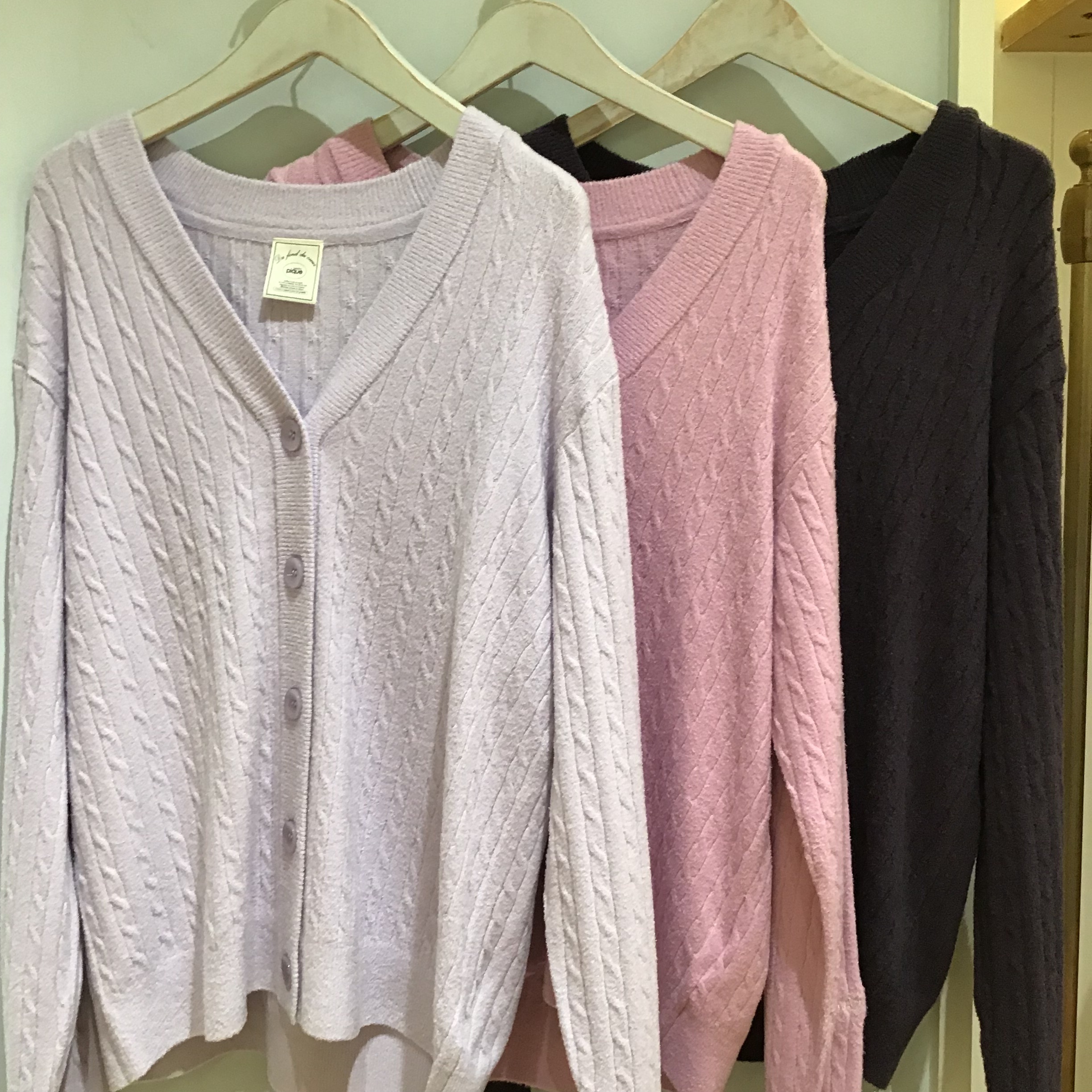 緩やかなVネックラインで大人見えするカーディガン。サイズ感はゆったりとしつつも、デコルテがきれいに見えるシルエットがポイントです。初夏を思わせるメリハリのある色使いにもこだわりました。色は涼しげなラベンダーと鮮やかなピンク、落ち着きあるネイビーの3色展開。同シリーズのロングパンツとショートパンツとのセットアップがおすすめです。