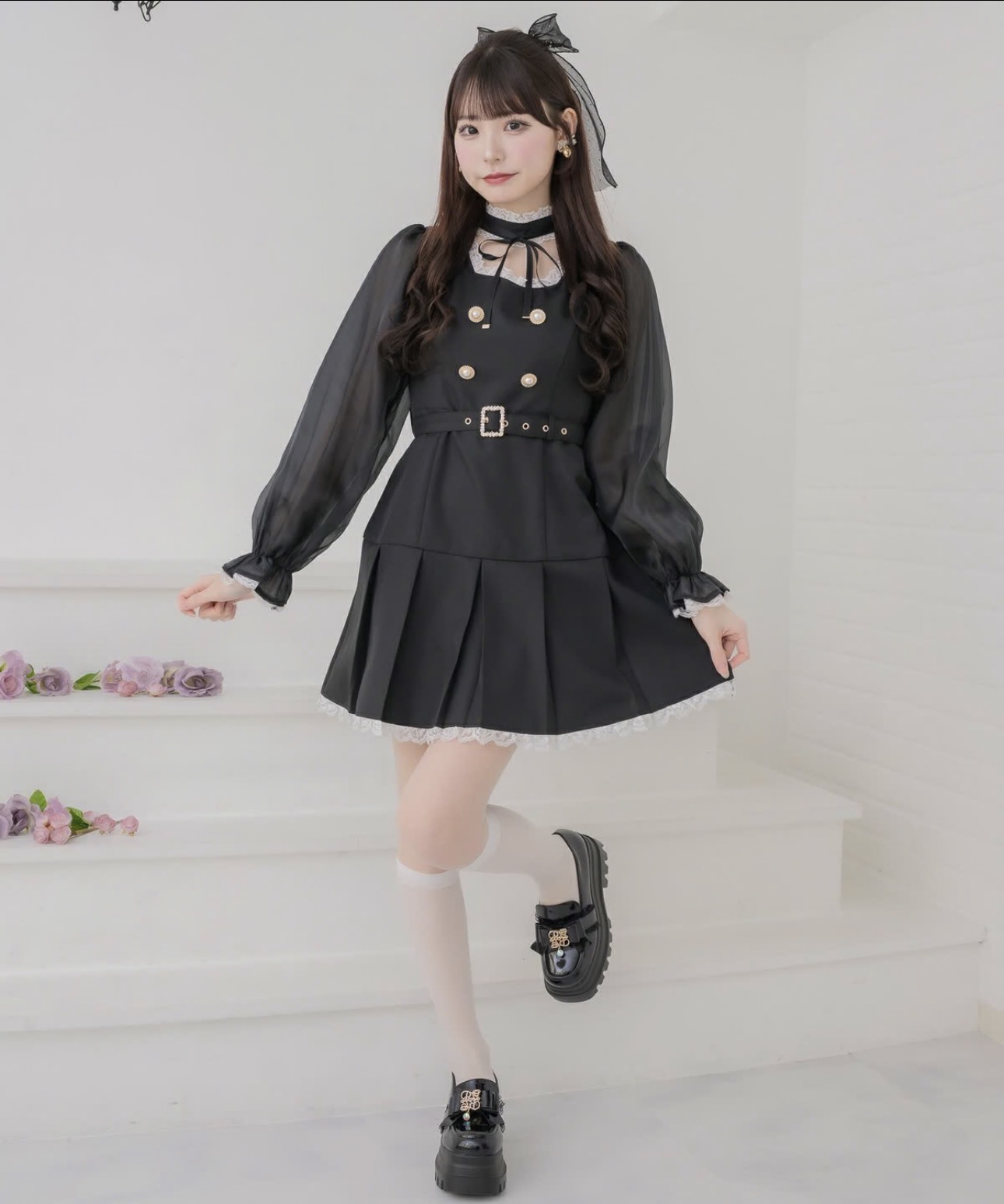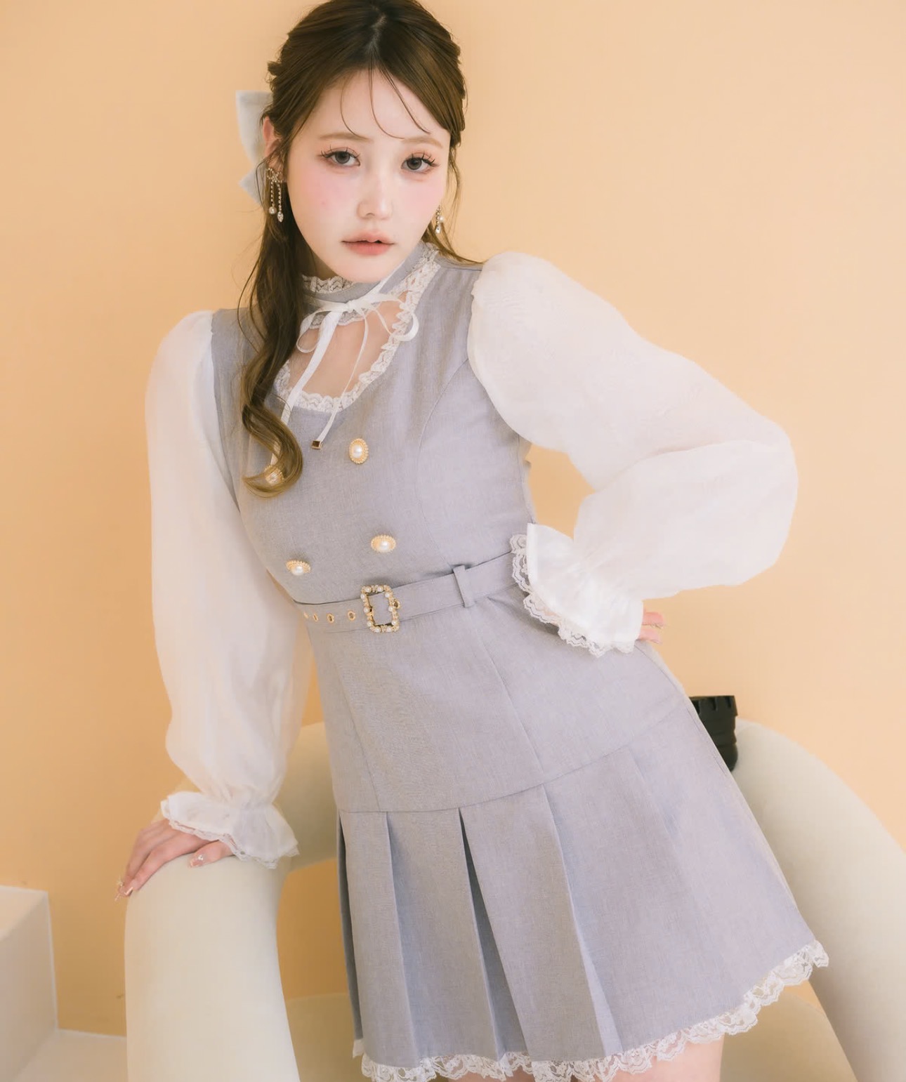 上品さとクラシカルな雰囲気を兼ね備えたワンピース。透け感のあるシアースリーブで軽やかさをプラスし、全体的にお育ちの良さそうな上品な印象に♪ウエストベルトでメリハリのあるシルエットに仕上げ、腰の切り替えプリーツがデザインに立体感と奥行きを添えます。