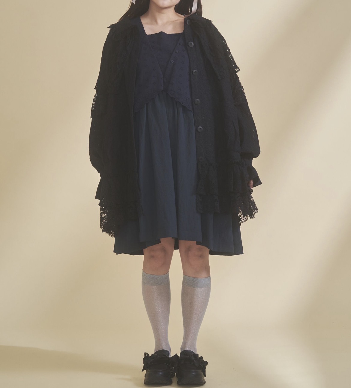 襟にはコットンレースを使用し、甘さと繊細さをプラス。