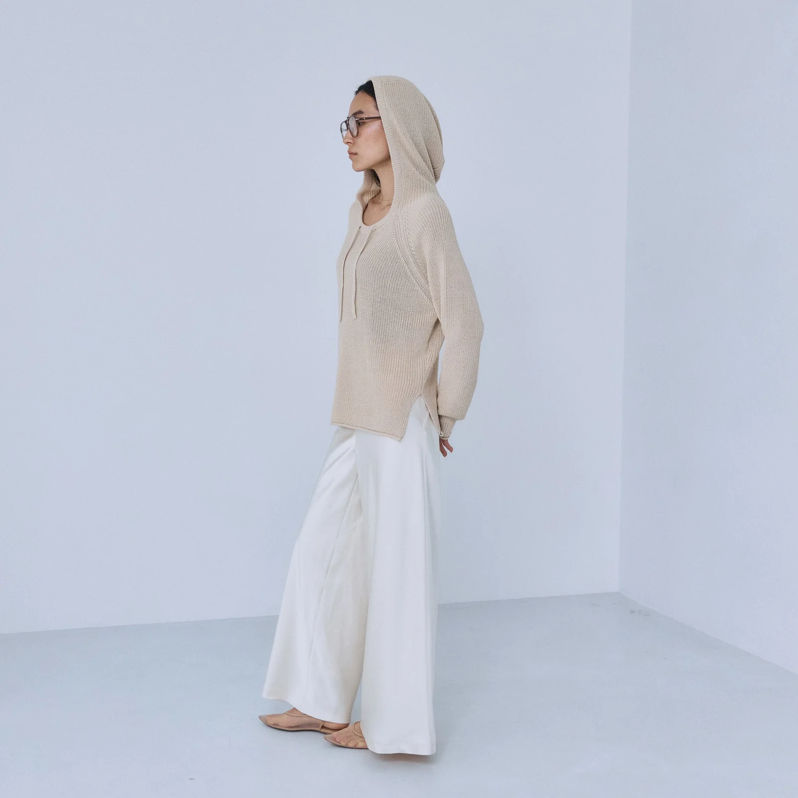 バイアス特有の落ち感を活かすことで、ワイドながらも広がりすぎず、スッキリと洗練されたラインに仕上げました。