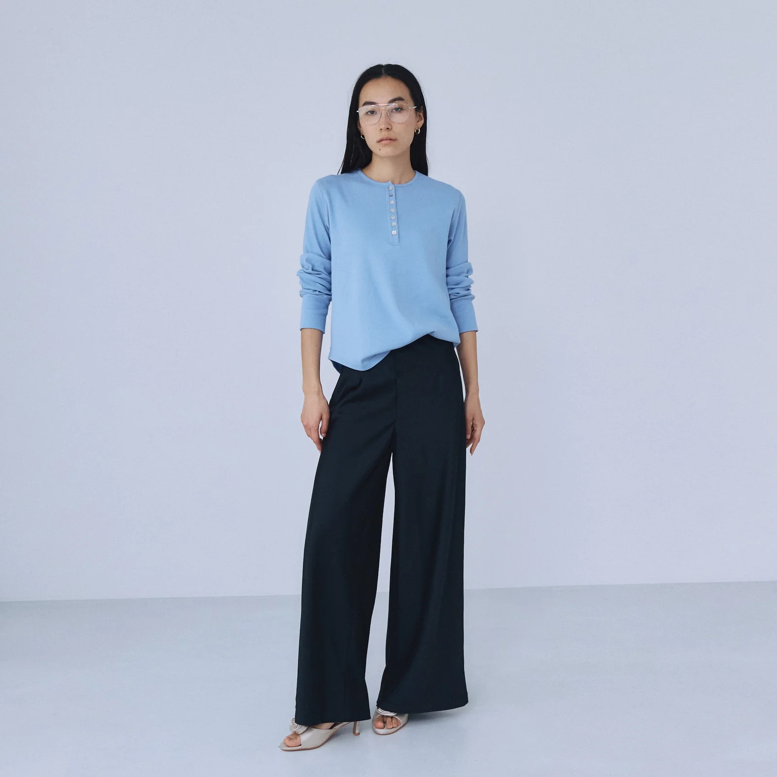 大好評だった〈Basic Satin ストレートパンツ〉をワイドシルエットへアップデート。