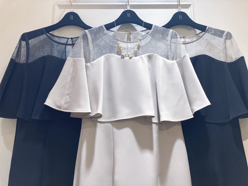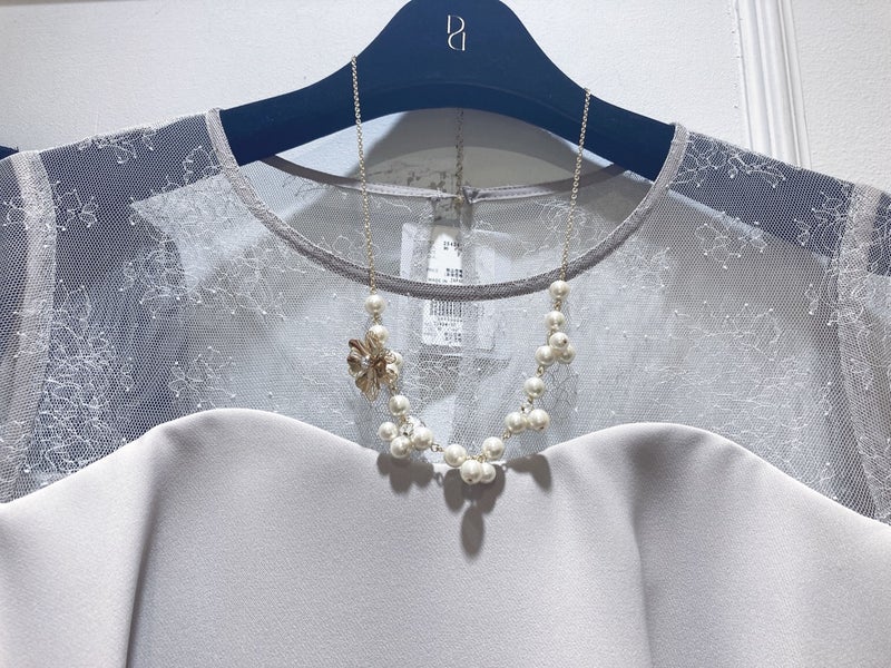 デコルテレースにパールのお花を添えて華やかをプラスしてくれます。