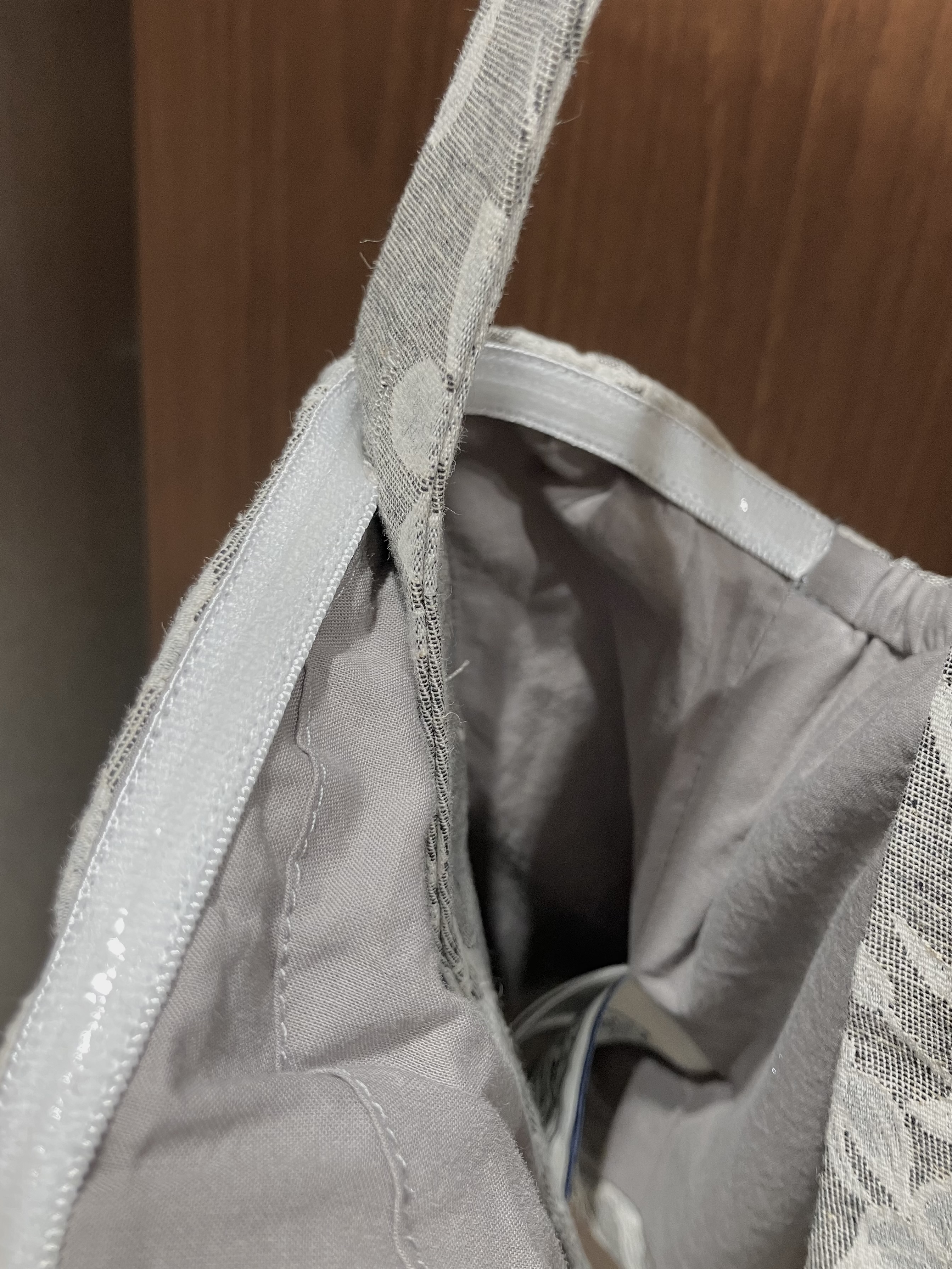 取り外し可能な肩紐デザインのトップスには滑り止めのゴムも付いているので、