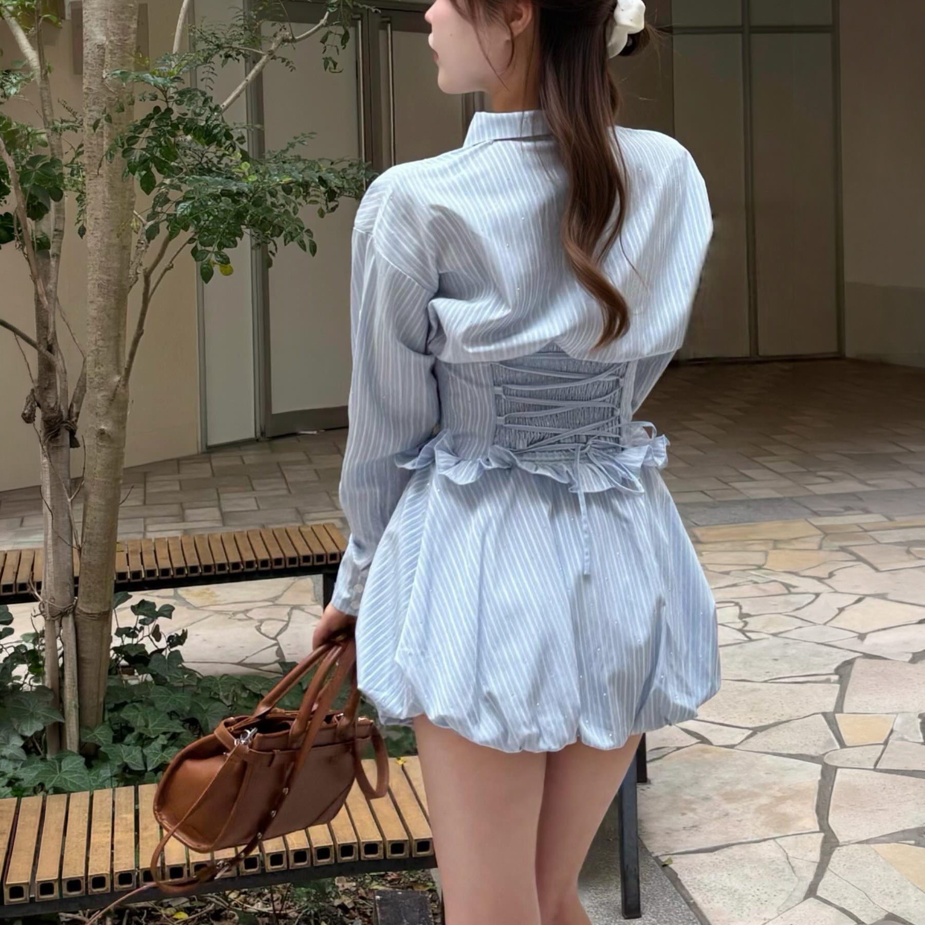 レースアップ仕様でウエストを美しくシェイプし、バルーンスカートが立体感と可愛らしさをプラス💫
