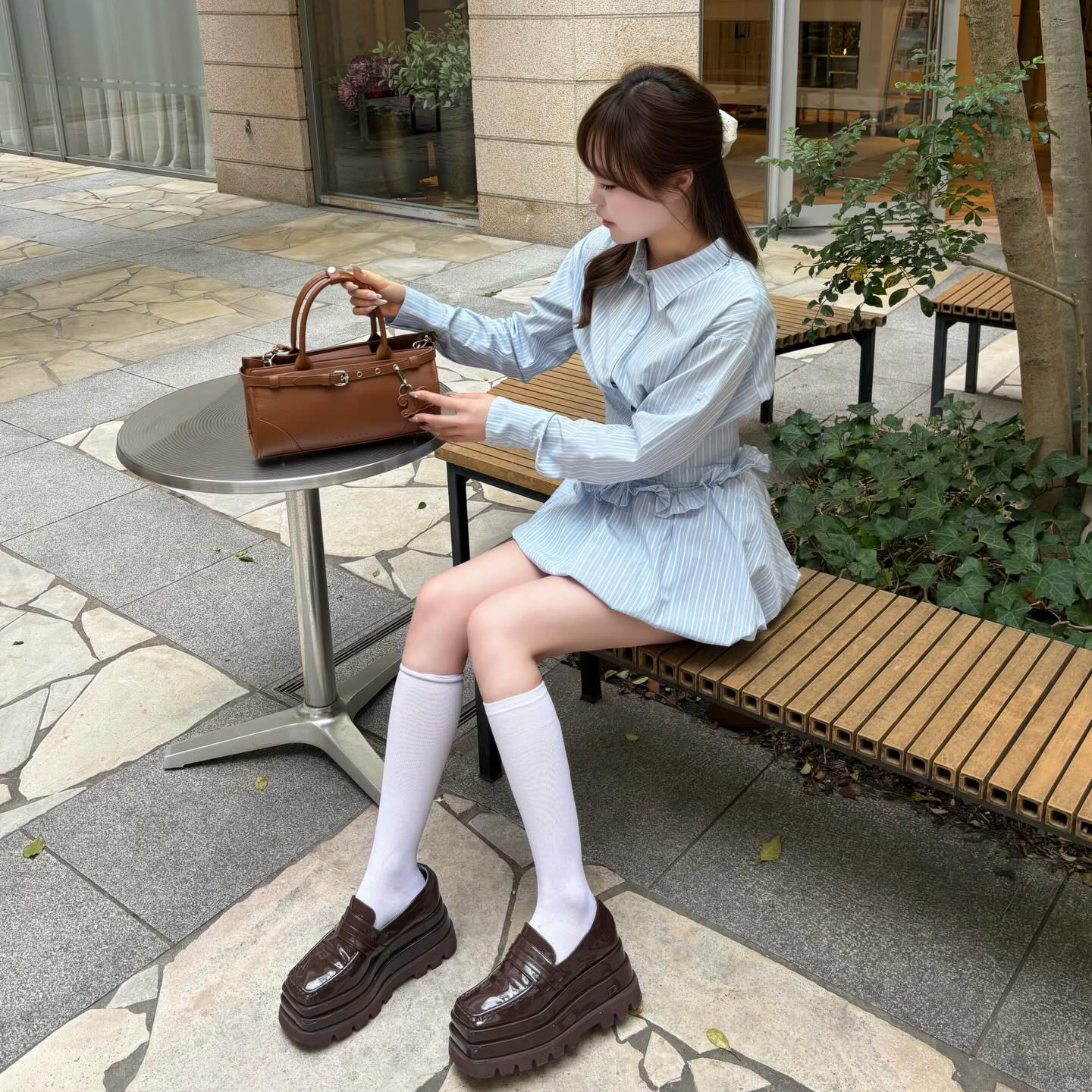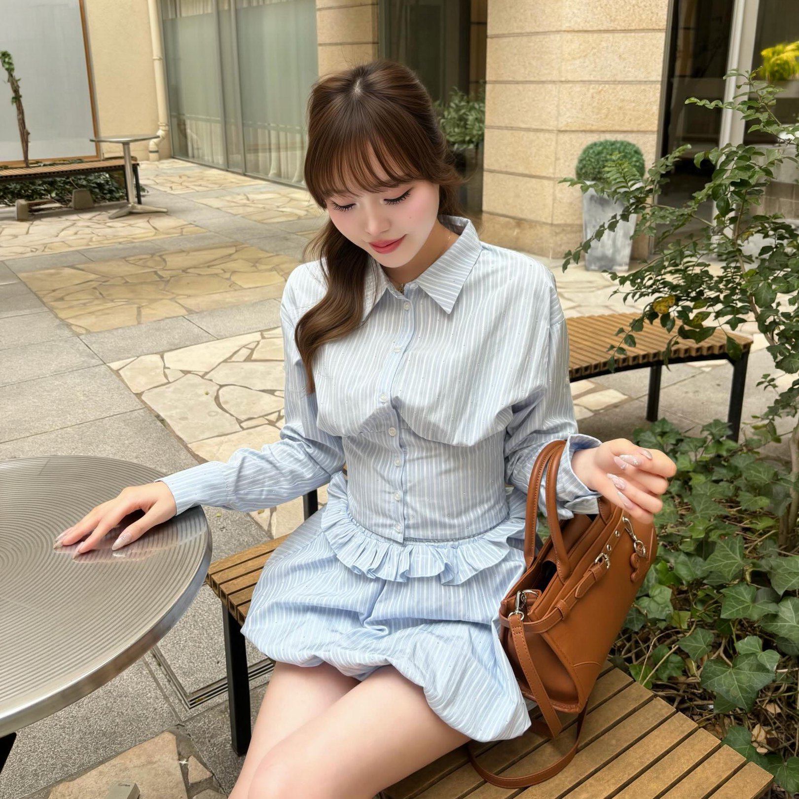 ホットフィットを散りばめたストライプシャツに、コルセット風ディテールを落とし込んだトレンド感たっぷりのセットアップ👗✨