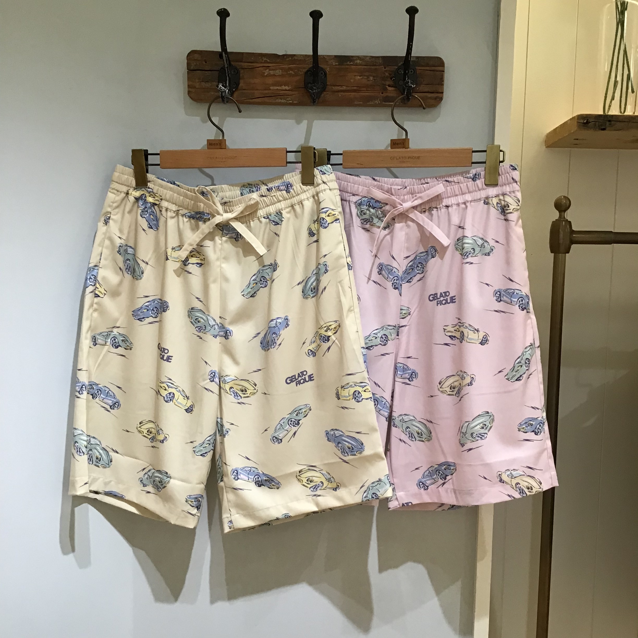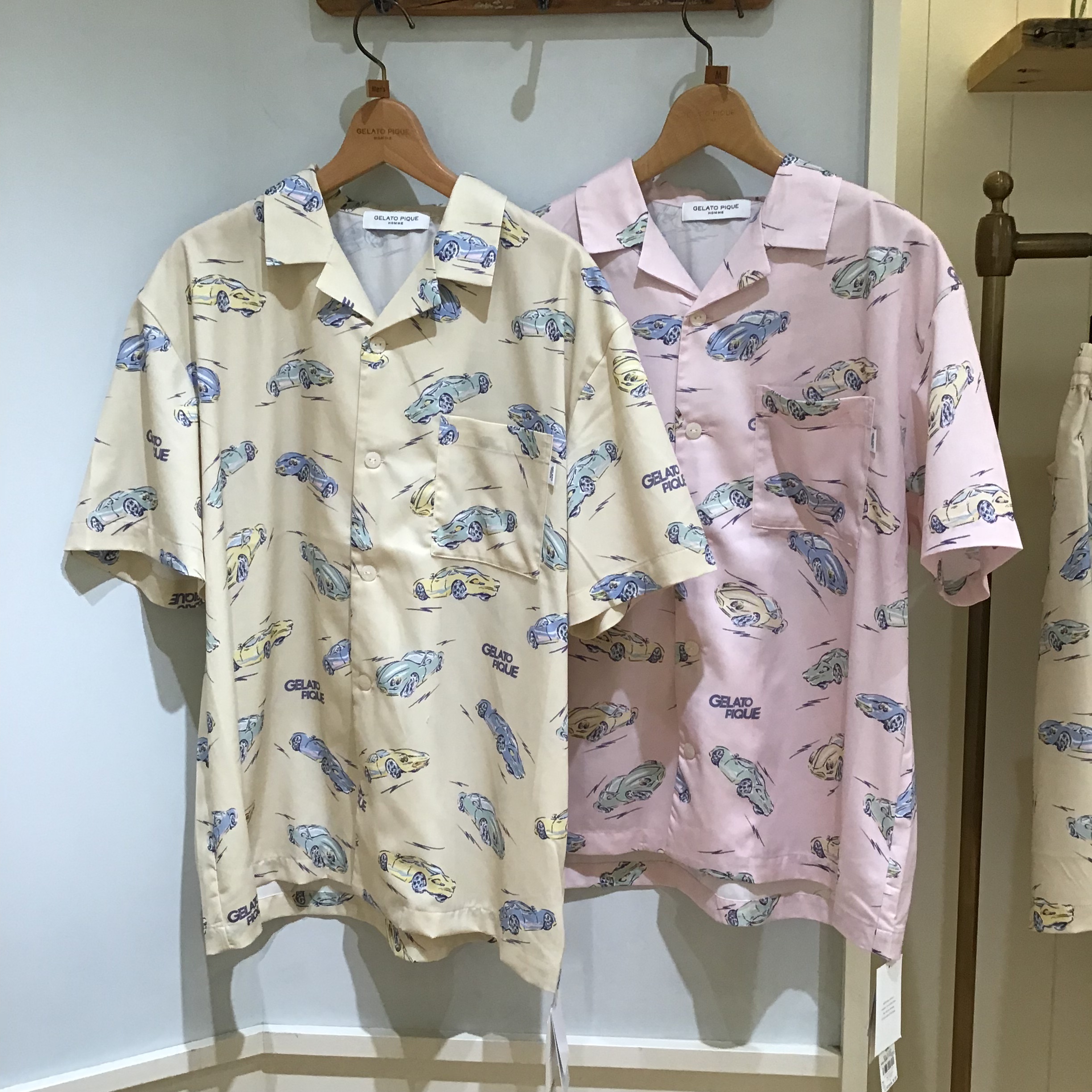 色とりどりの車の絵柄にロゴを組み合わせ、さらっと軽やかな生地にプリントしました。左胸にポケット付き。