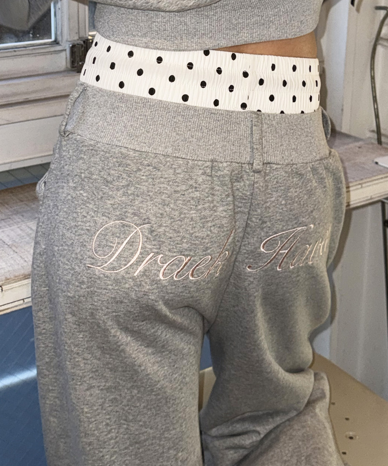 一番上のウエストはドット生地で可愛く今っぽく、後ろにはロゴ刺繍を添えてトレンド感をプラスしました。